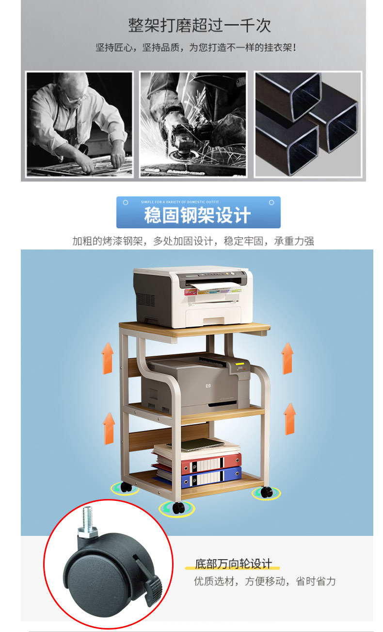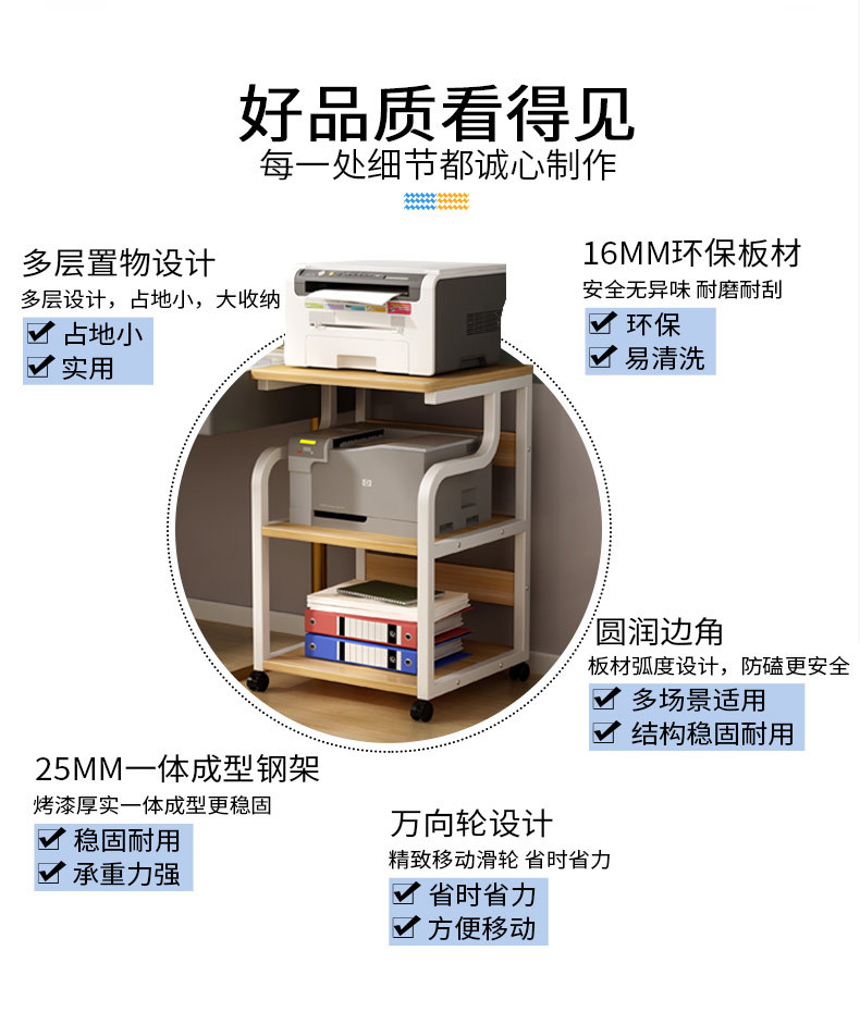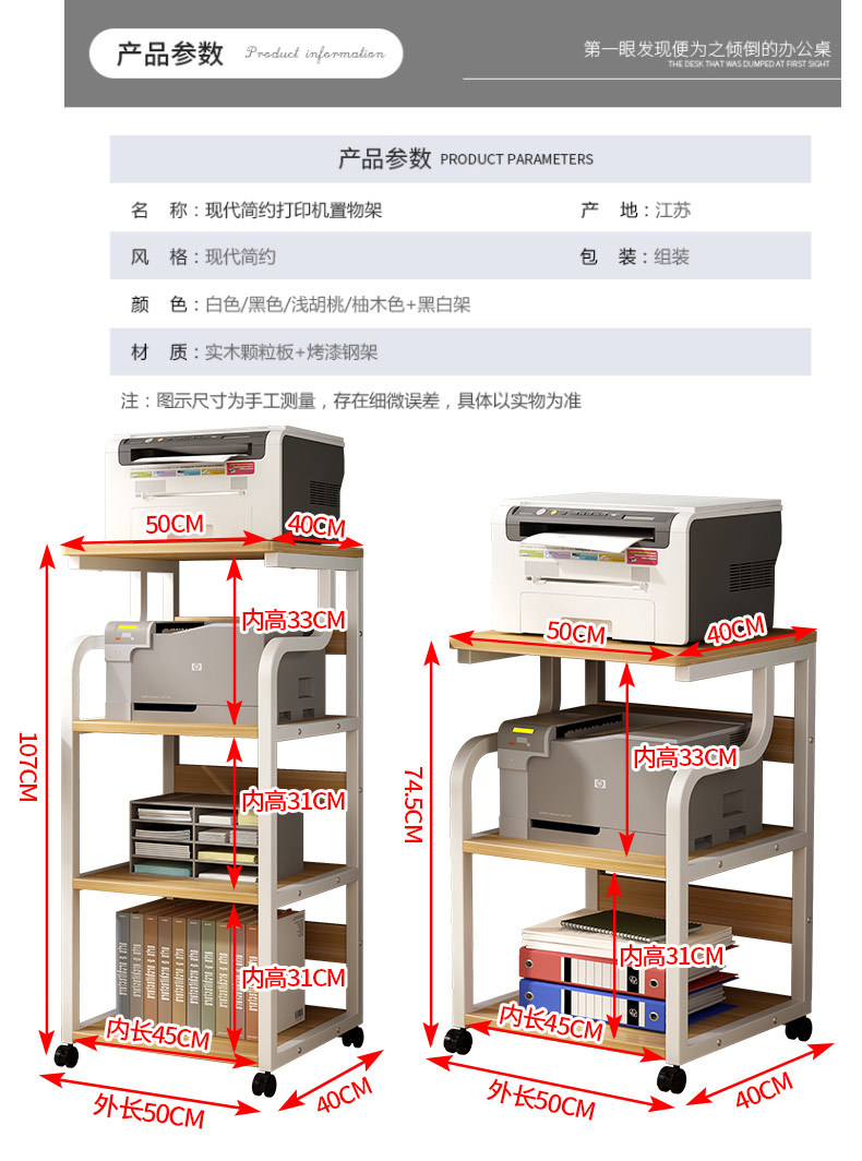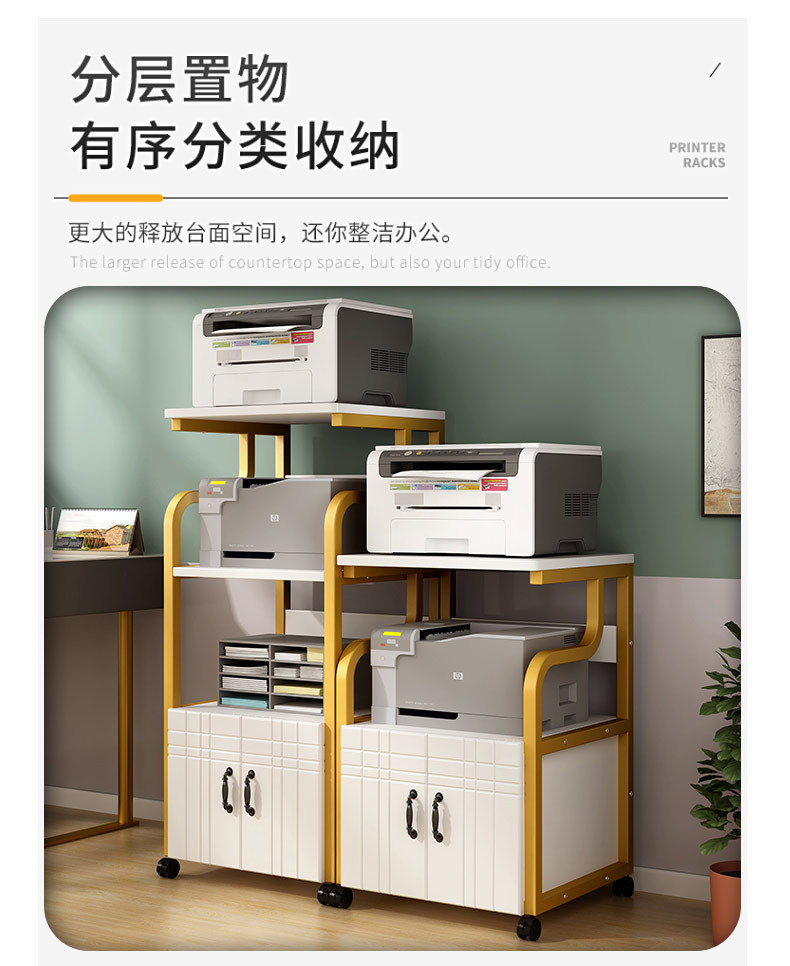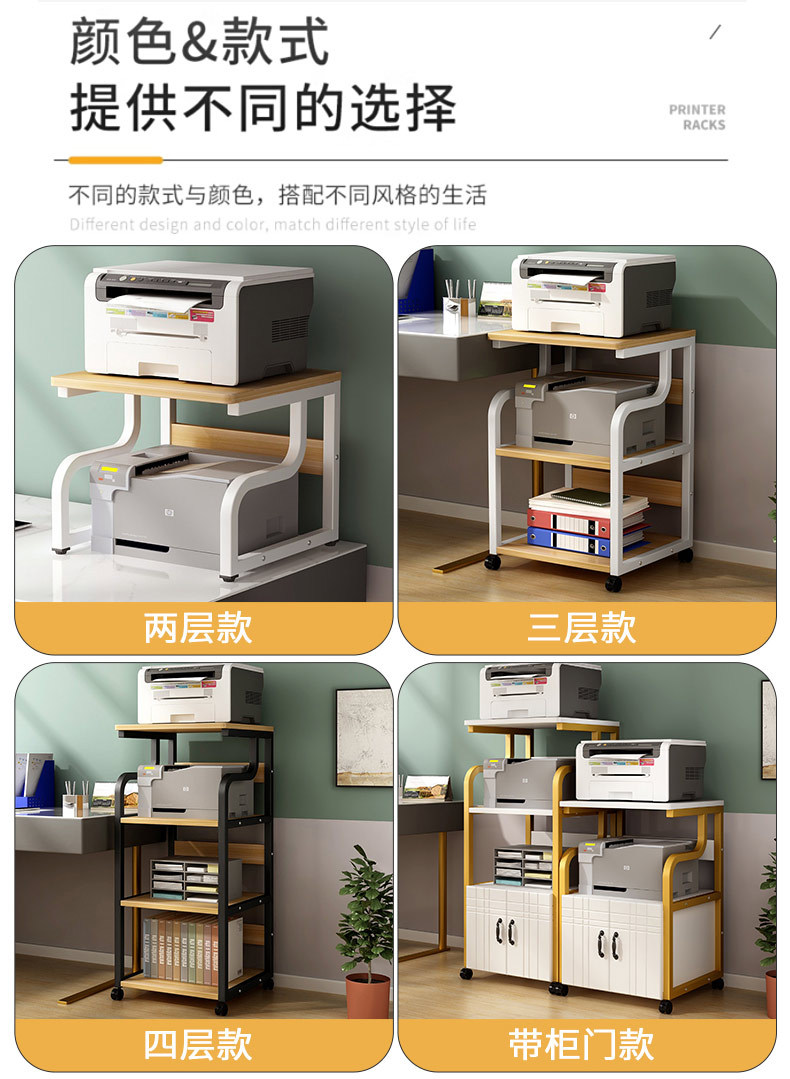 可移动打印机置物架架子多层落地收纳架放置架办公室桌边桌子柜子