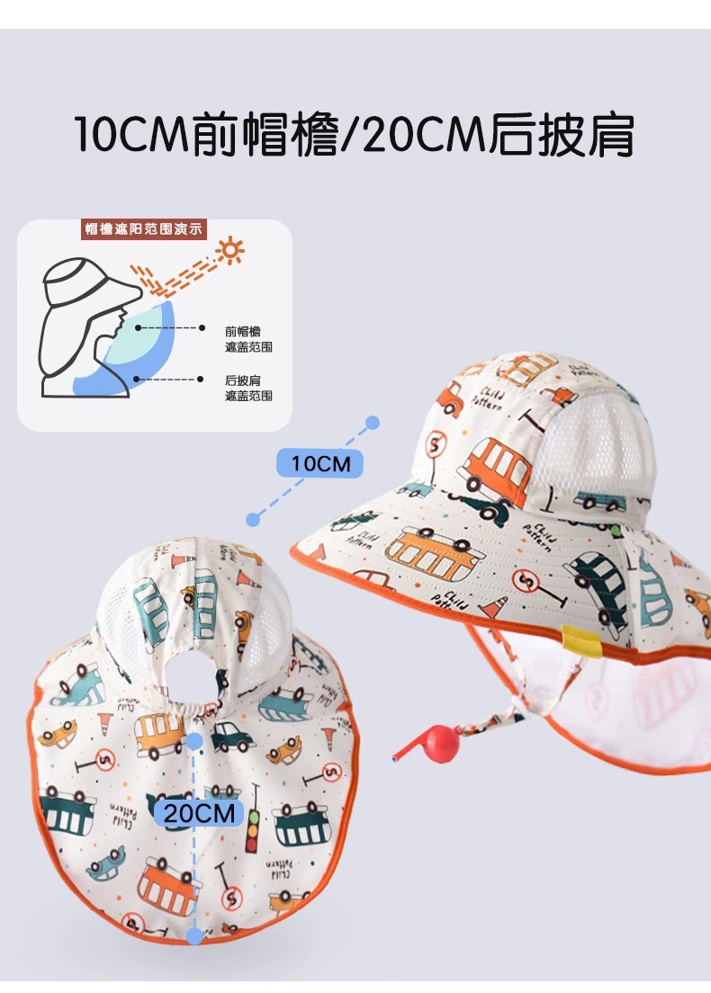 • [자동차]-(오렌지 목도리)-어린이 태양 모자