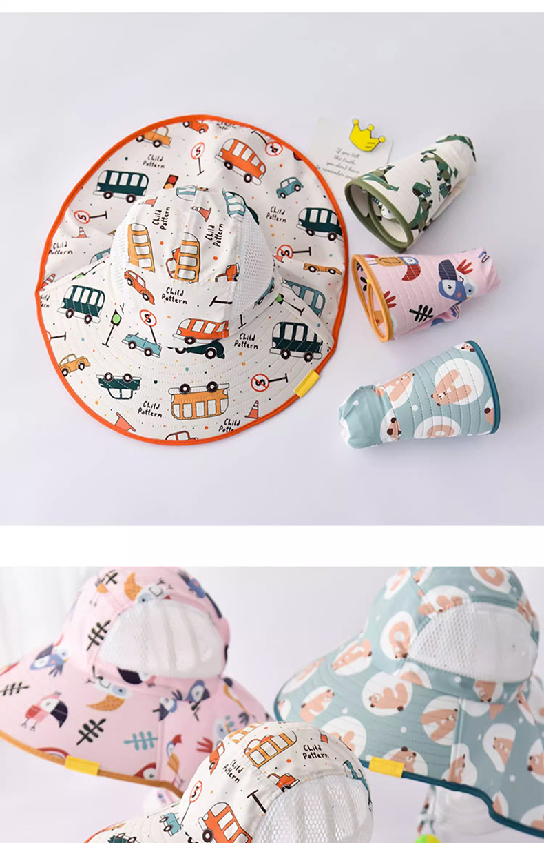 어린이 차양 모자 여름 얇은 대형 챙 숄 자외선 차단제 모자 소년과 소녀를위한 귀여운 접이식 태양 모자 비치 모자스토어 가기