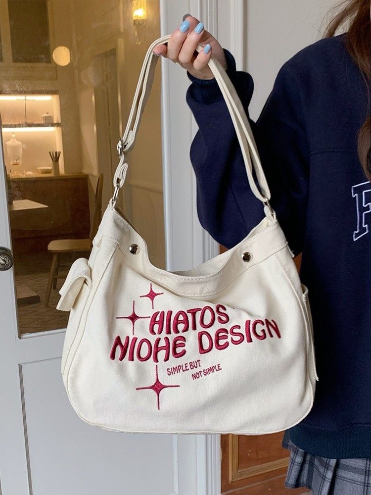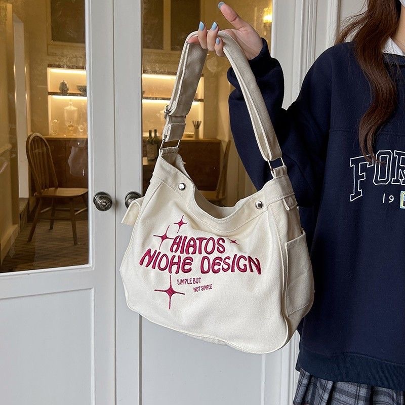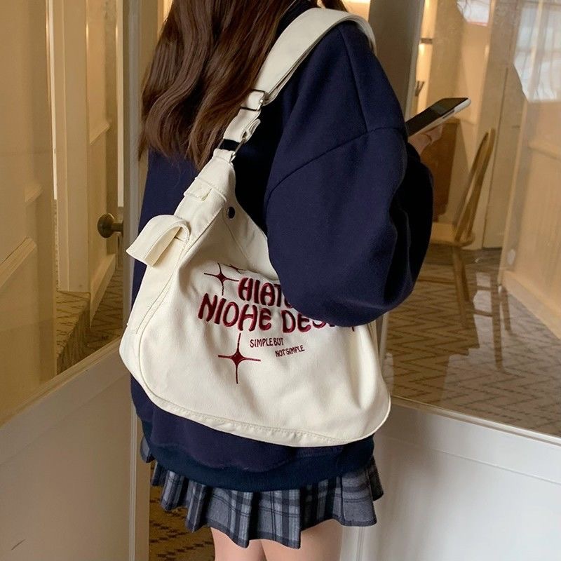 심플한 학생용 크로스백, 여성용 숄더백, 캔버스 소재의 귀여운 대용량 학습용 가방, 휴대용 가방스토어 가기