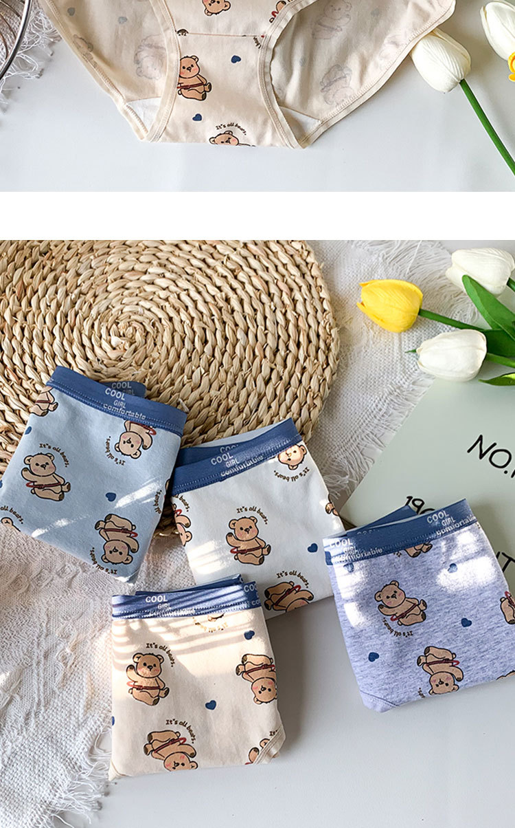 새로운 커플용 순면 속옷 귀여운 곰 여성 만화 사각 팬티 청소년 통기성 사각 팬티 삼각 팬티스토어 가기
