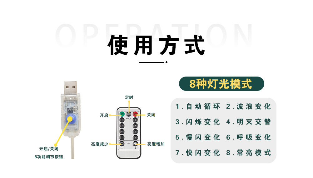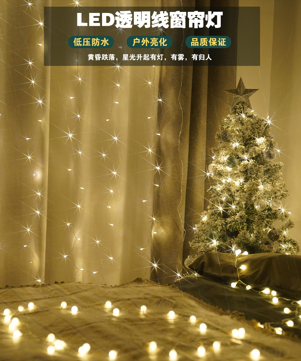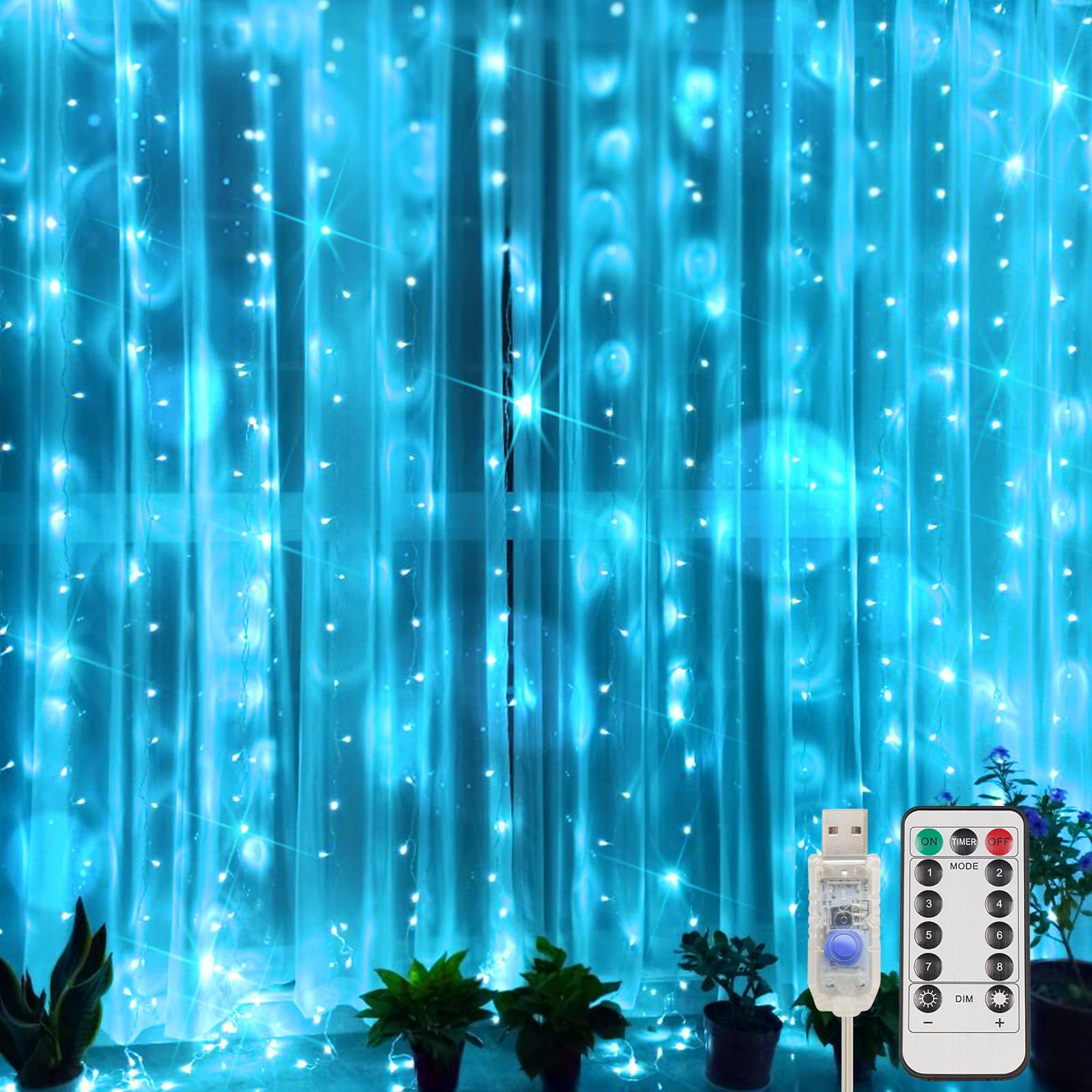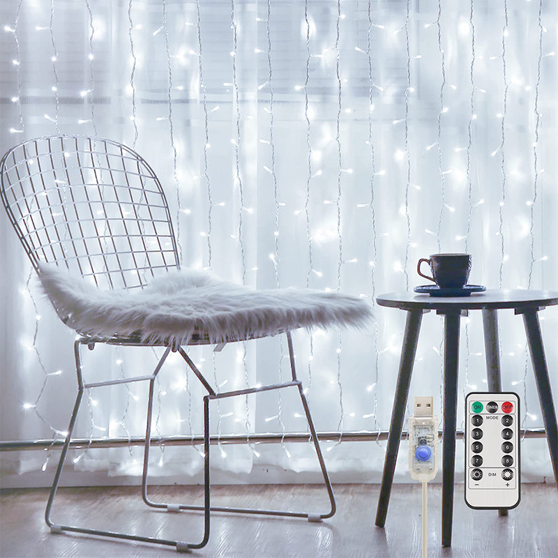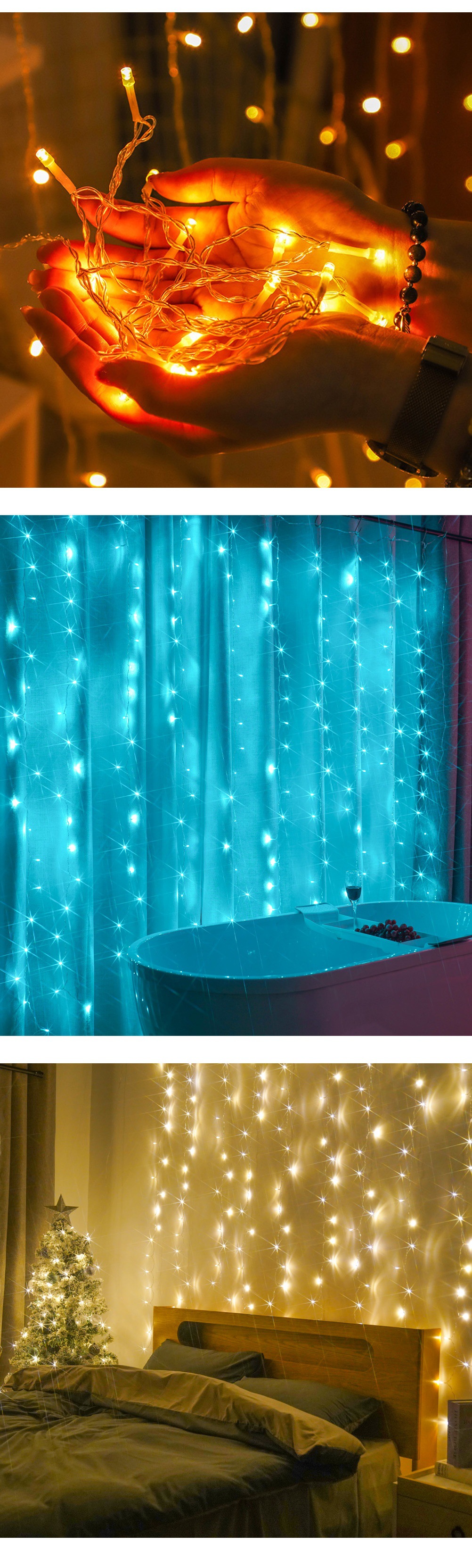 야외 USB 조명 스트링, 원격 제어 조명 스트링, 장식용 투명 와이어 조명, 실내 방수 커튼 조명, LED 폭포 조명, 분위기 조명스토어 가기