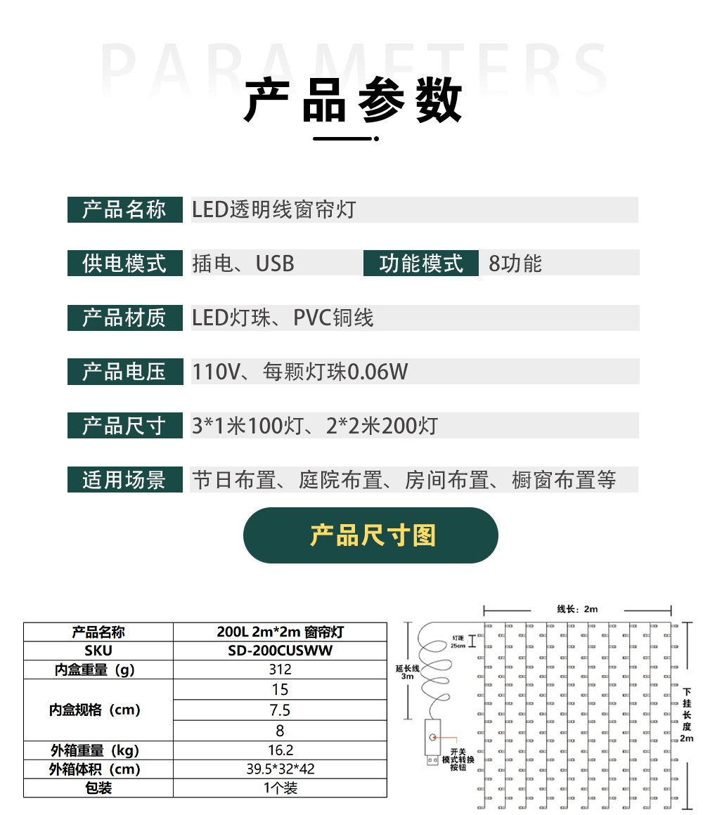 • 2m*2m 200헤드 가변색상(웜화이트/핑크)