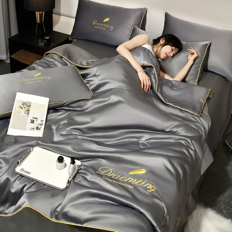 라이트 럭셔리 워싱 텐셀 자수 여름 이불 4 종 세트 아이스 실크 쿨 여름 이불 실크 에어컨 이불 4 종 세트 도매