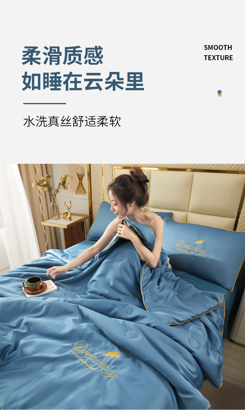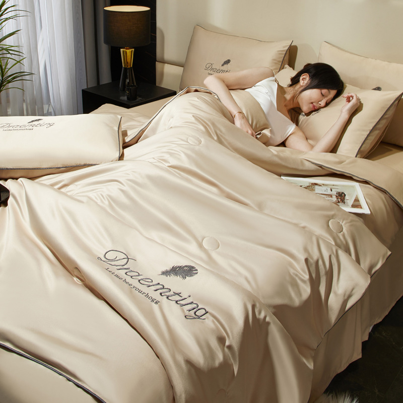 라이트 럭셔리 워싱 텐셀 자수 여름 이불 4 종 세트 아이스 실크 쿨 여름 이불 실크 에어컨 이불 4 종 세트 도매스토어 가기