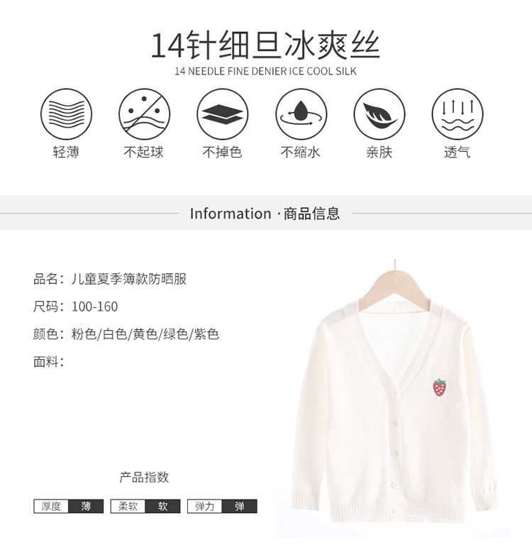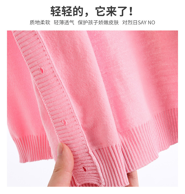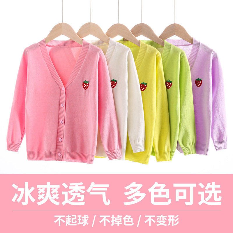 여아 가디건 스웨터 2023 여름 아이스 실크 경량 통기성 자외선 차단제 코트 아동 도서 느슨한 에어컨 셔츠