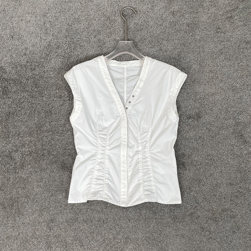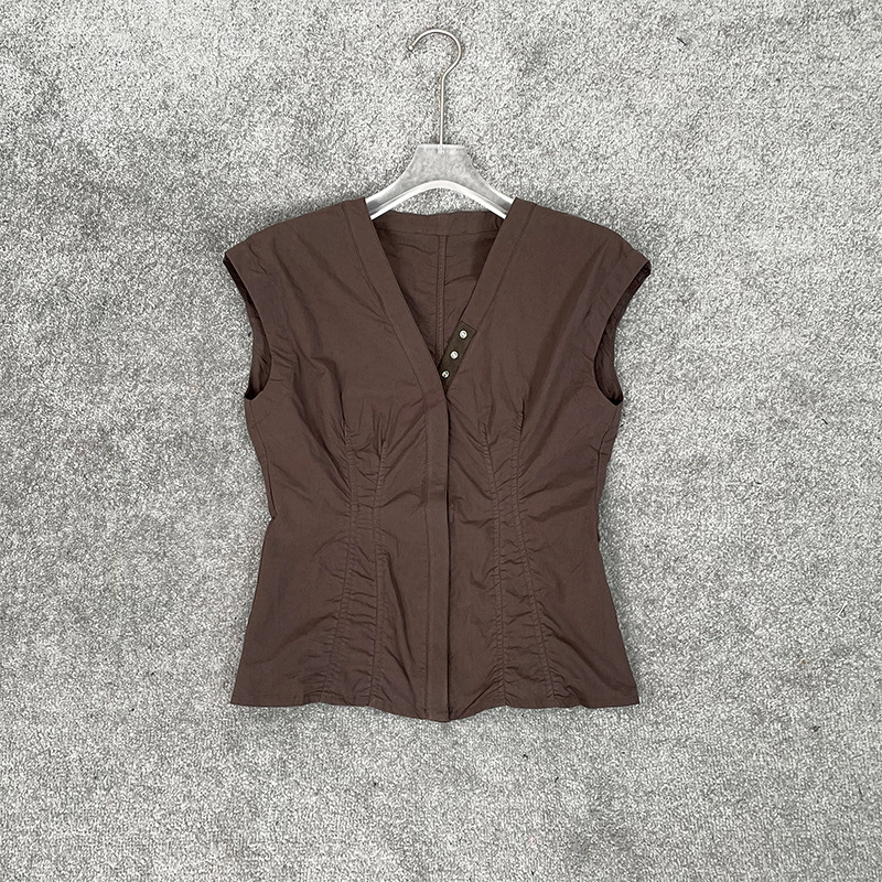 구매자 샵 2023 봄과 여름 다크 브라운 주름 V-넥 조끼 탑 싱글 브레스트 허리 민소매 조끼 카디건 여성