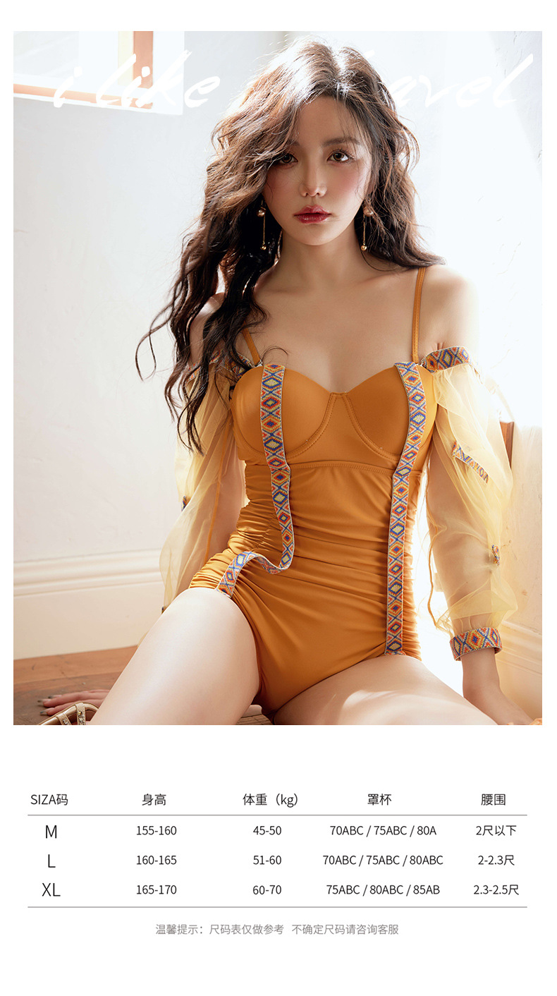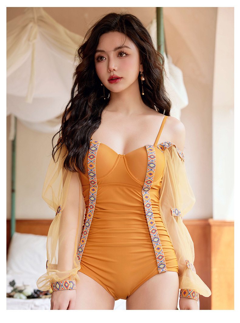 프랑스 복고풍 수영복 여성용 원피스 섹시 긴팔 요정 팬 강토 모여 슬림해 보이는 살점 덮인 스커트 휴가 수영복스토어 가기