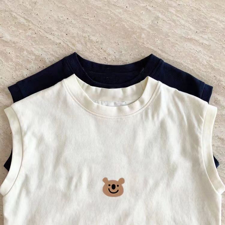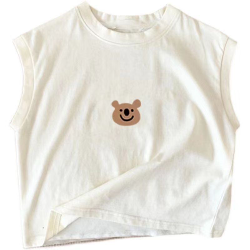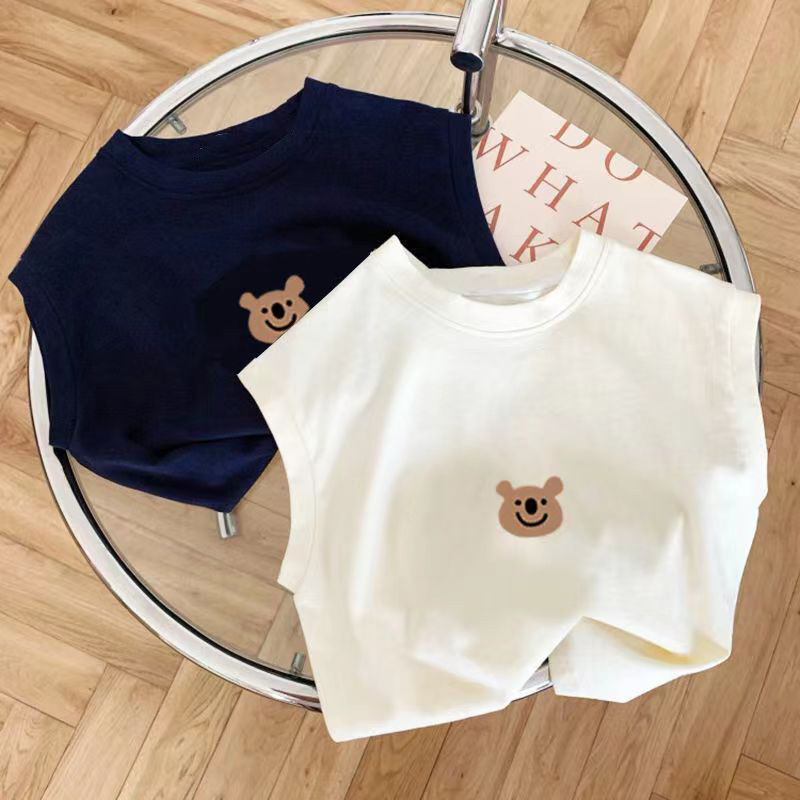 100% 면 어린이 민소매 T2024 새로운 반팔 여름 귀여운 아기 중소 어린이 소녀상의 어린애 같은