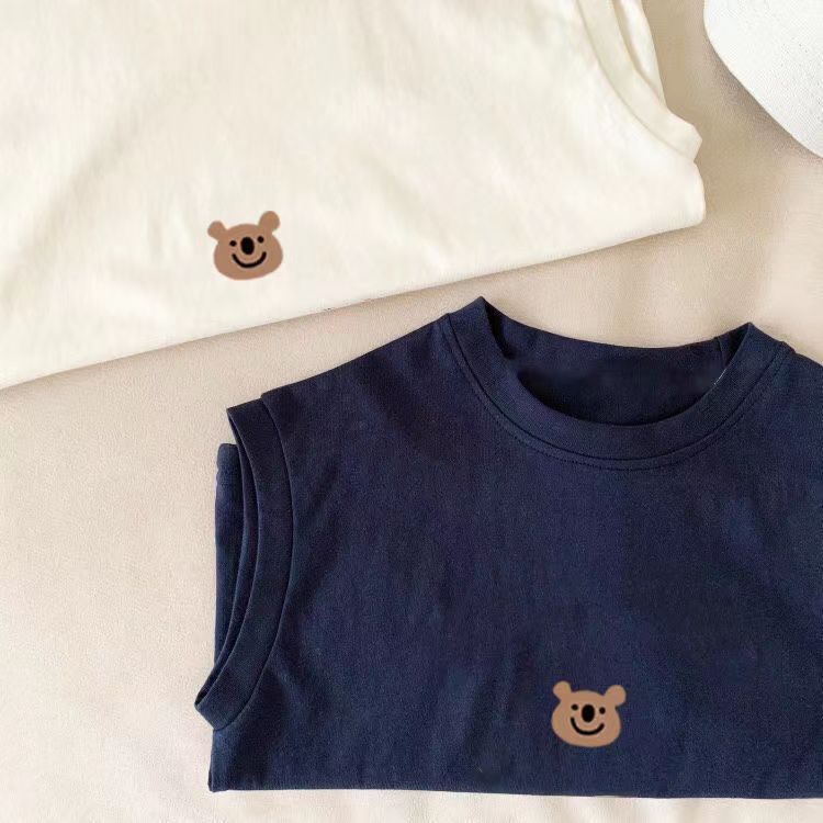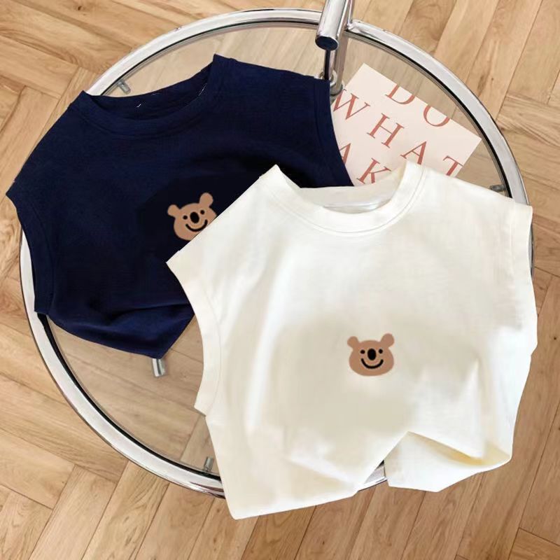 100% 면 어린이 민소매 T2024 새로운 반팔 여름 귀여운 아기 중소 어린이 소녀상의 어린애 같은스토어 가기