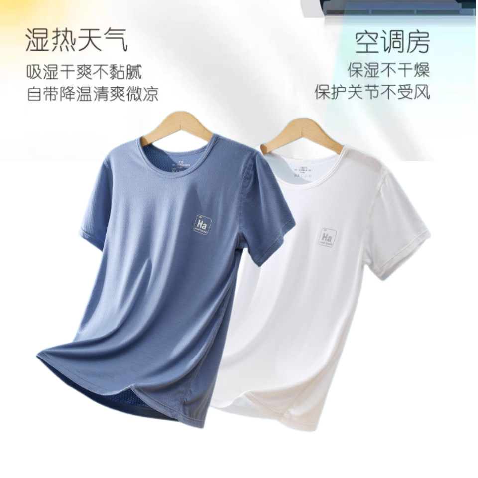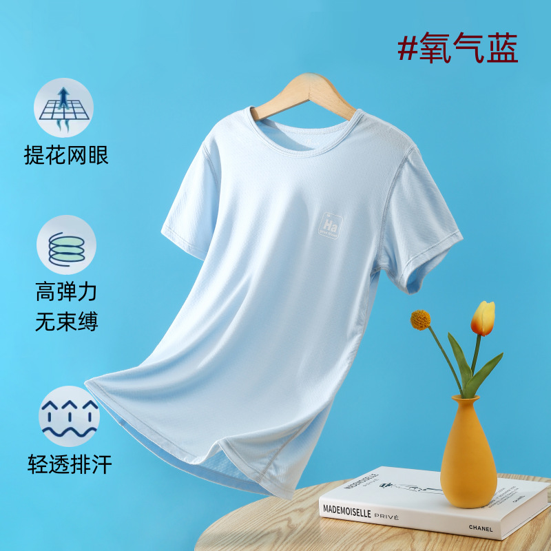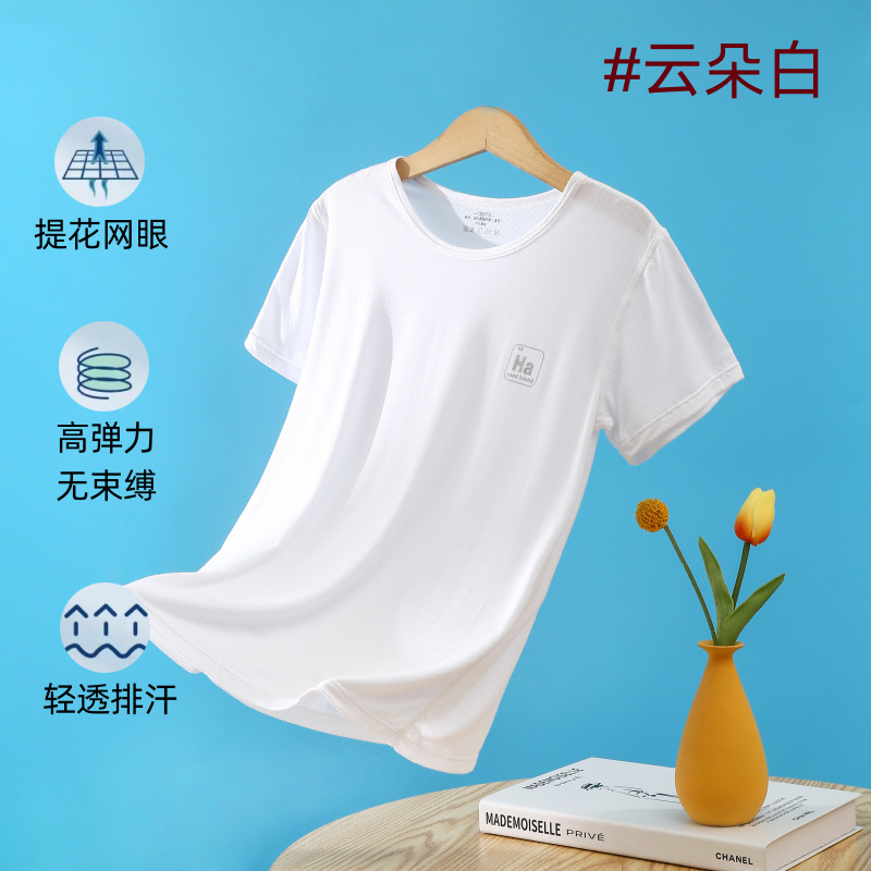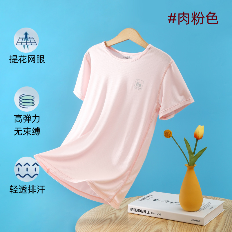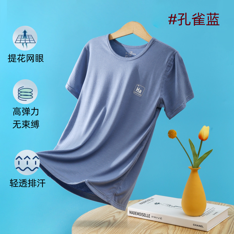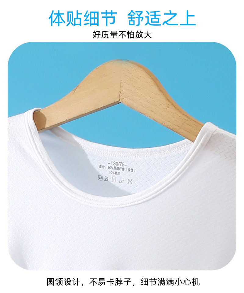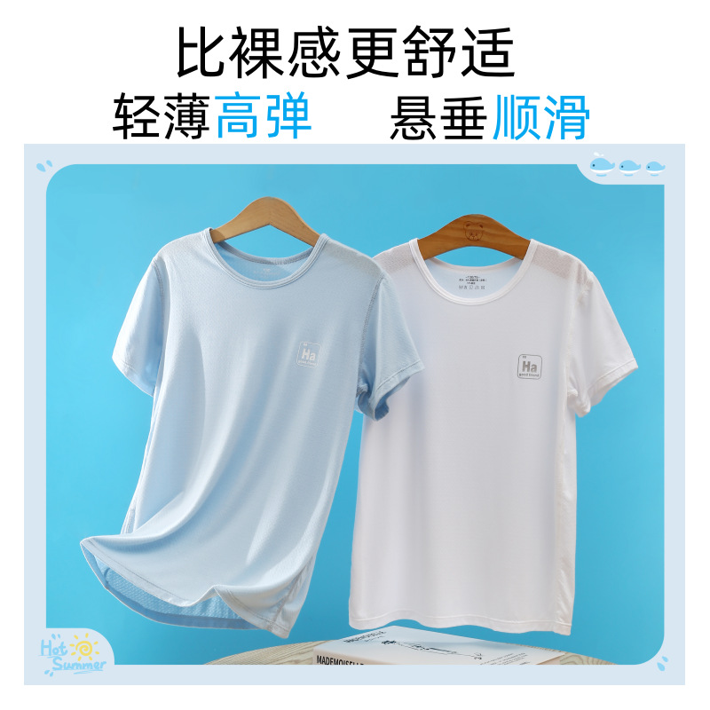 소년과 소녀를위한 어린이 모달 반팔 여름 얇은 아이스 실크 탑 새로운 스타일 중간 및 큰 어린이 기본 셔츠 통기성 티셔츠