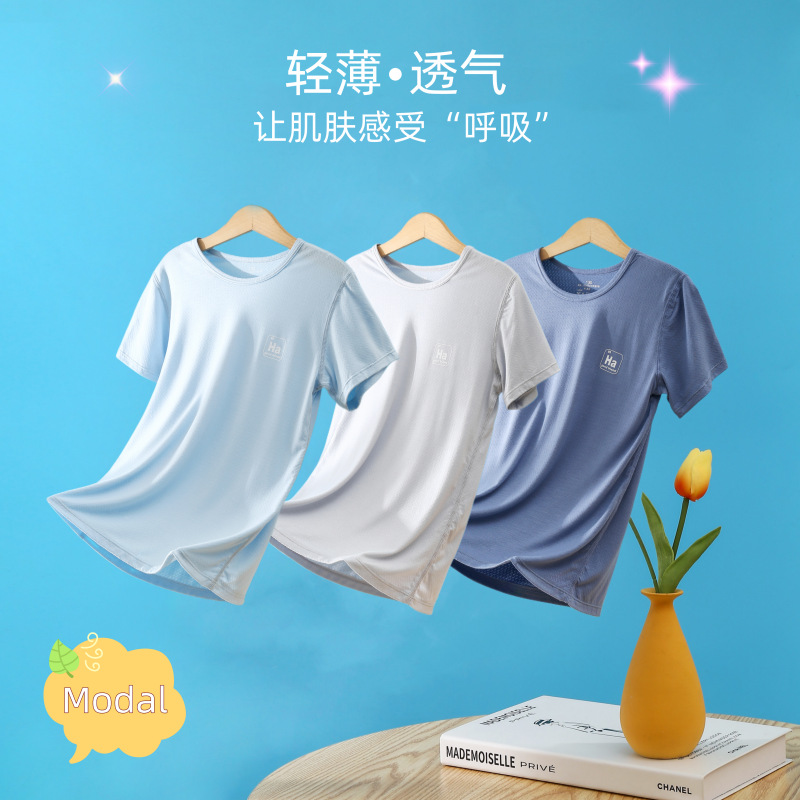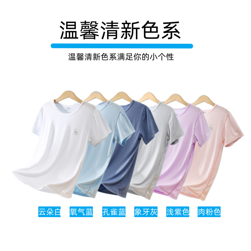 소년과 소녀를위한 어린이 모달 반팔 여름 얇은 아이스 실크 탑 새로운 스타일 중간 및 큰 어린이 기본 셔츠 통기성 티셔츠스토어 가기