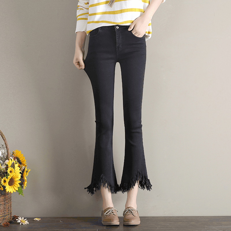 유럽과 미국의 검은 청바지 여성의 대외 무역 2023 높은 허리 단단한 한국 스타일 대형 슬리밍 봄과 가을 얇은 다리 바지스토어 가기