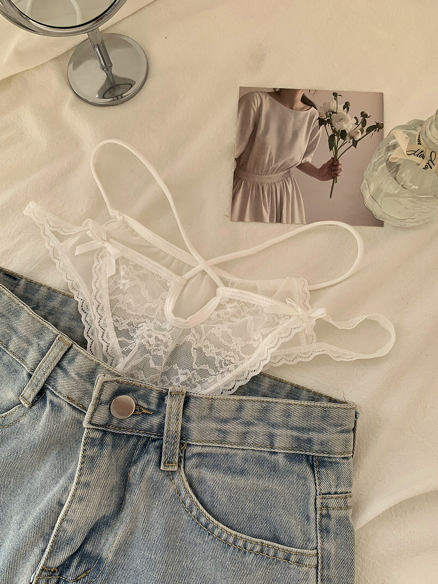새로운 여성의 순수한 욕망 속옷 여름 얇은 섹시 중공 투명 레이스 낮은 허리 레이스 속건 달콤한 소녀