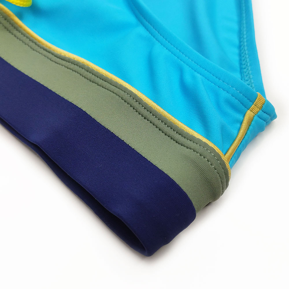 UXH 유럽 및 미국 크로스 보더 남성용 섹시한 삼각형 수영 트렁크 컵 비치 휴가 팬티 가짜 더블 레이어 와이드 벨트