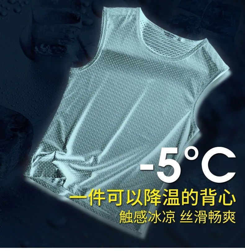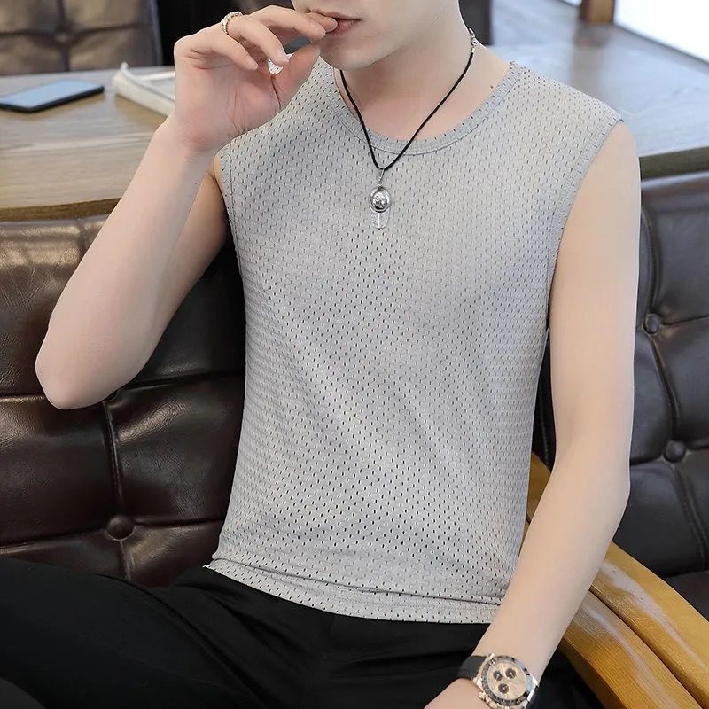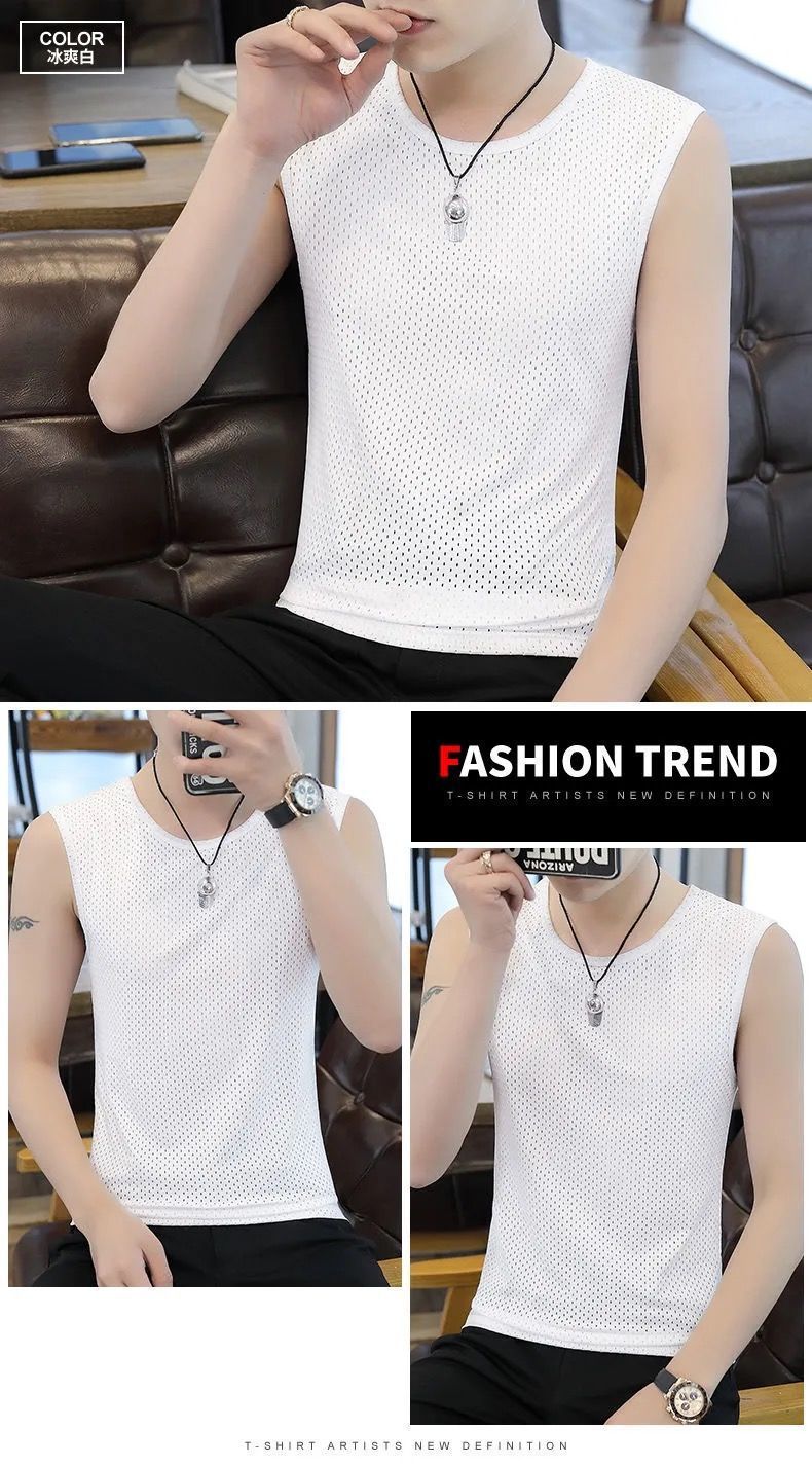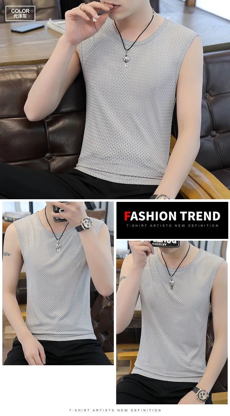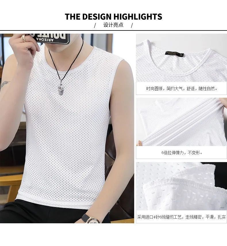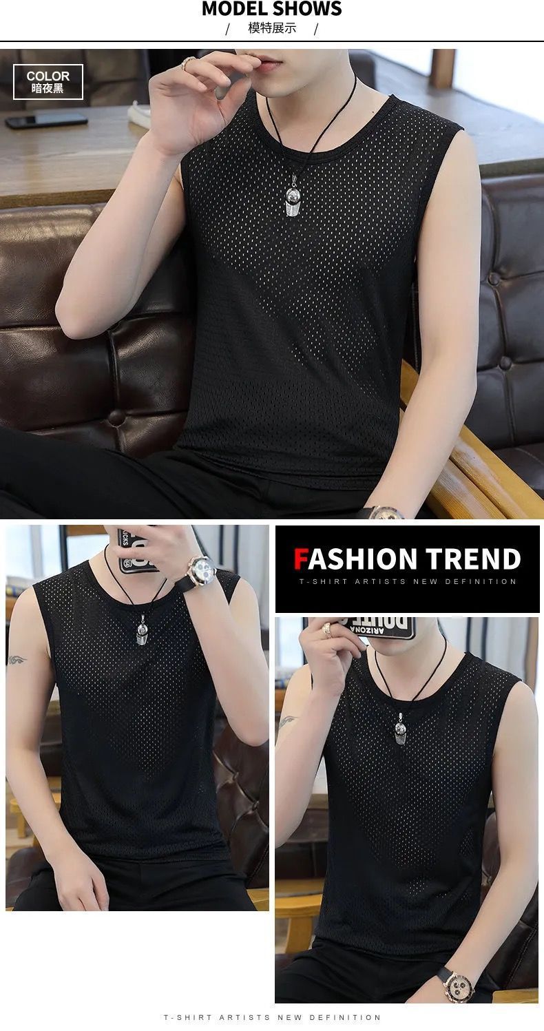 여름 새로운 플러스 사이즈 메쉬 통기성 아이스 실크 조끼 남자의 라운드 넥 타이트 스포츠 민소매 티셔츠 조끼 유행 6