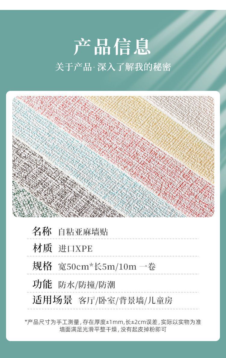 린넨 침대 옆 벽 스티커 3d 벽 스티커 강 벽 종이 자체 접착 방수 방습 침대 옆 소프트 백 벽 스티커스토어 가기