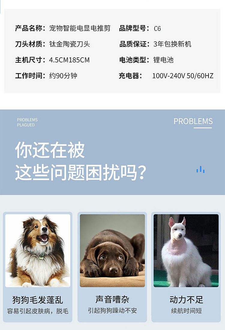공장 맞춤형 애완견 전기 이발기, 강아지 면도기, 테디견, 애완동물샵 제모 및 털 청소스토어 가기