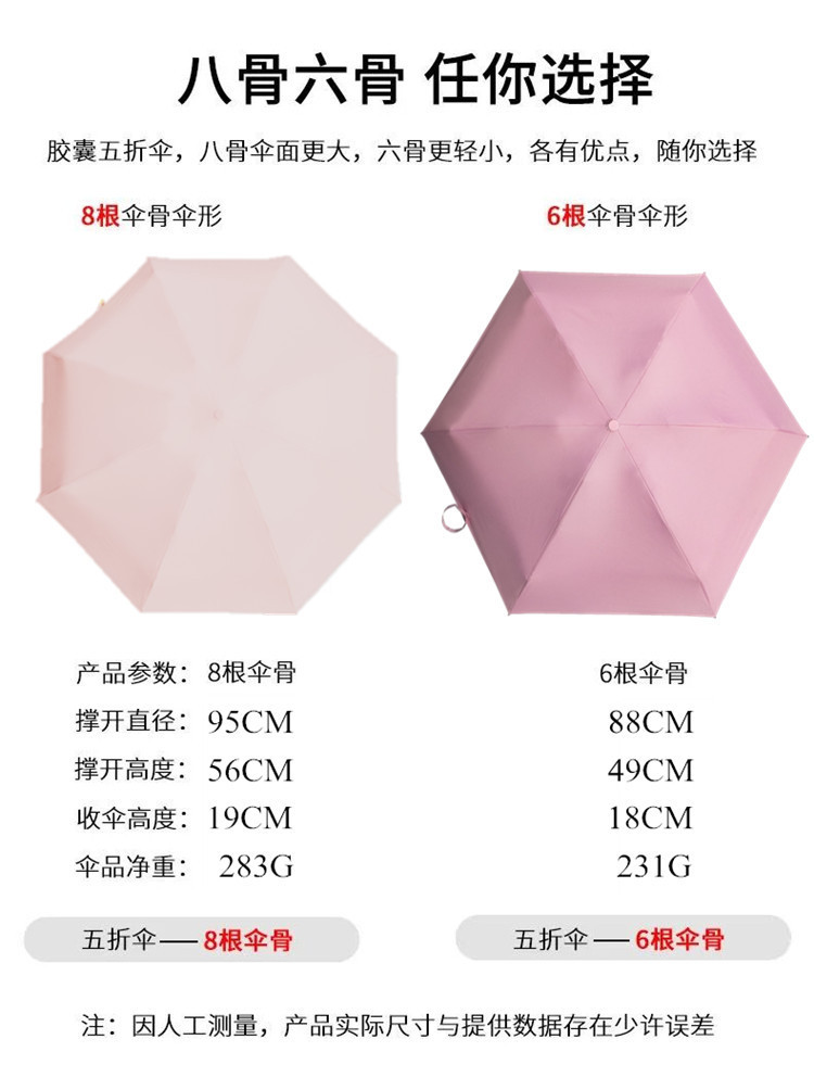태양 우산 50% off 8단 골격 자외선 차단 햇빛 가리개 UV 차단 소형 접이식 캡슐 우산 휴대용 보관 가능