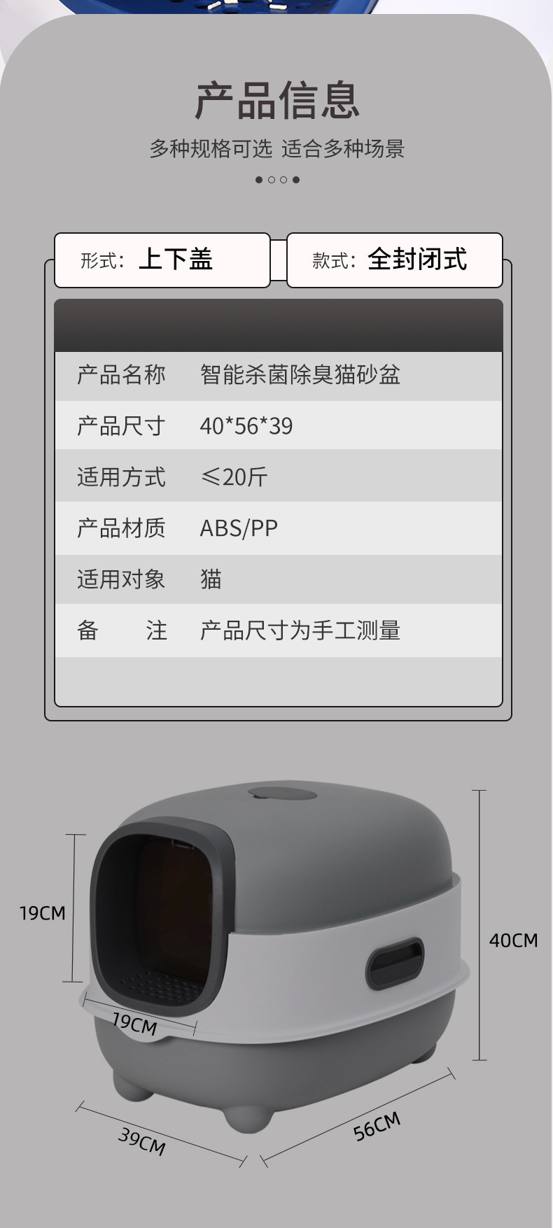 고양이 화장실 탈취 UV 살균 초대형 밀폐형 고양이 화장실 분리형 고양이 애완용품 대형