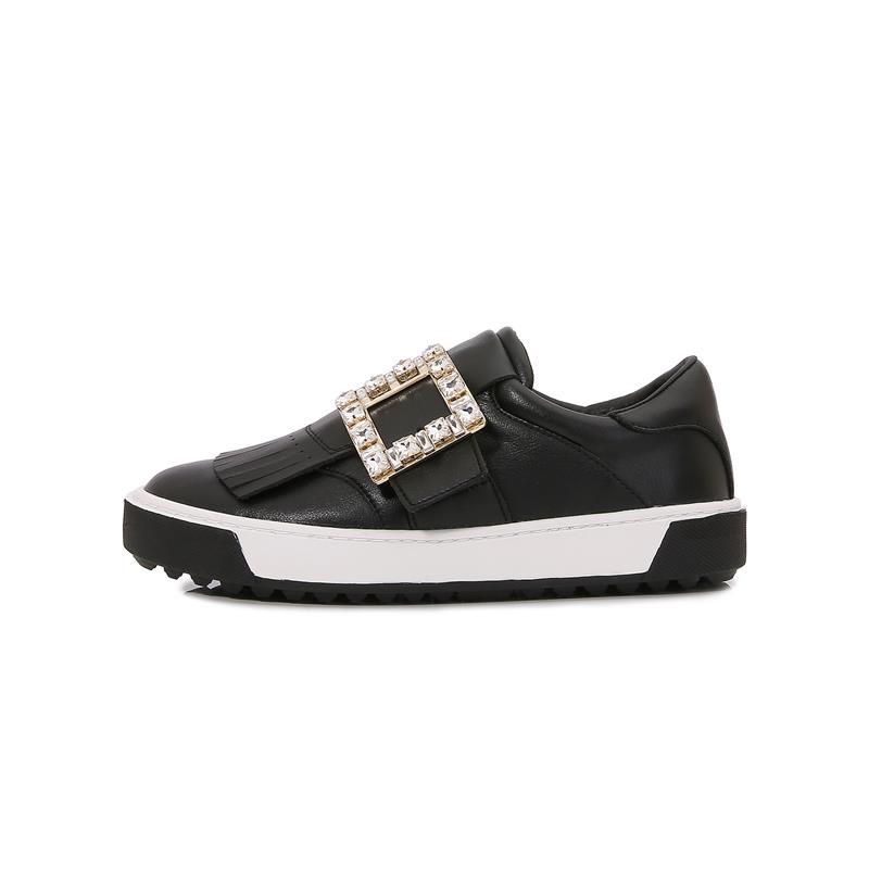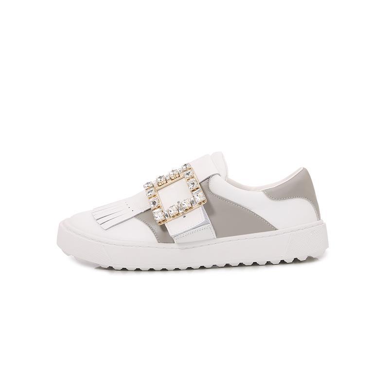 2026 봄/여름 신상품, 상큼하고 패셔너블한 라운드 토 슈즈, RV 벨크로 밴드, 신축성, 통기성, 두꺼운 밑창, 화이트 슈즈, 배색, 천연 가죽 여성화스토어 가기