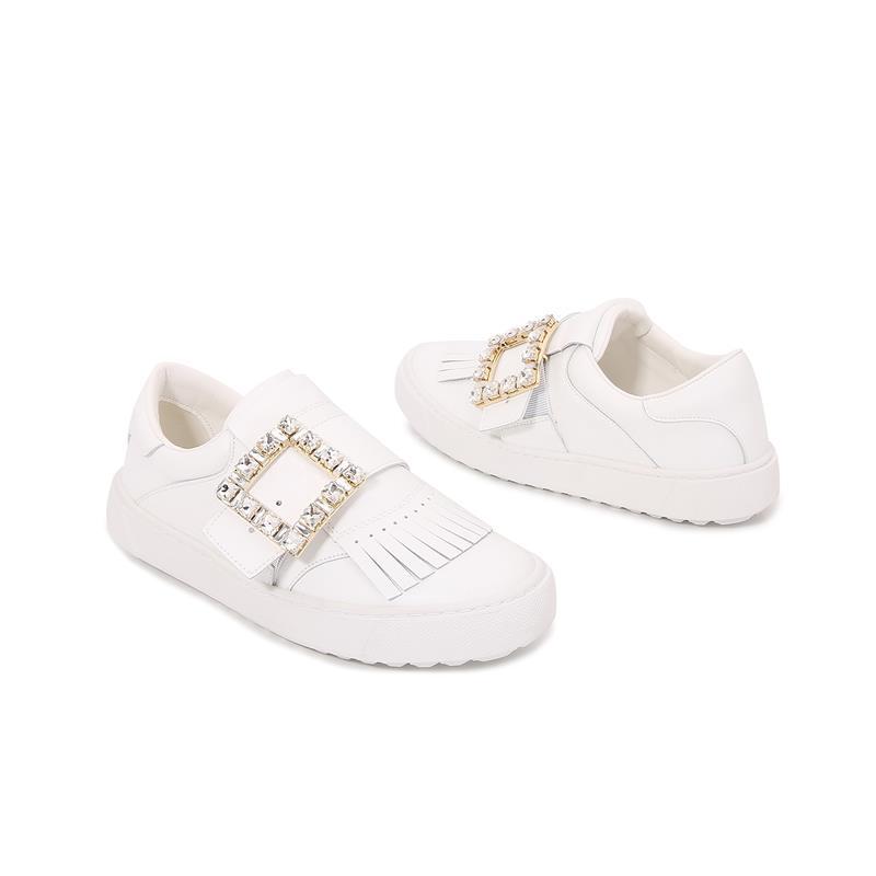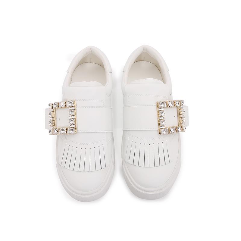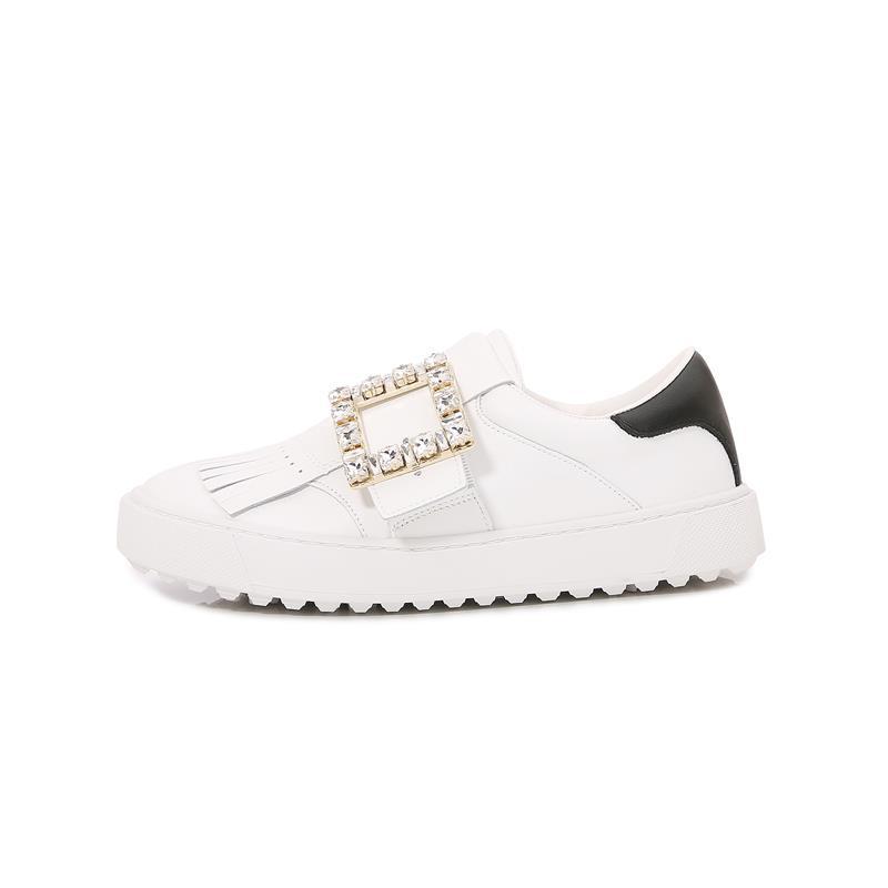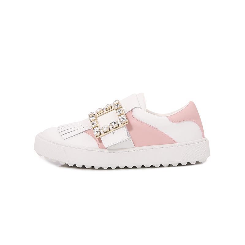 2026 봄/여름 신상품, 상큼하고 패셔너블한 라운드 토 슈즈, RV 벨크로 밴드, 신축성, 통기성, 두꺼운 밑창, 화이트 슈즈, 배색, 천연 가죽 여성화