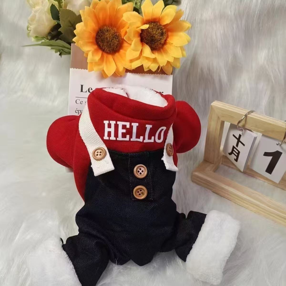 애완 동물 곰 작은 개 테디독 옷 가을과 겨울 겨울 면 코트 코듀로이 베어 스트랩 네 다리 옷