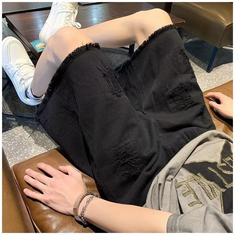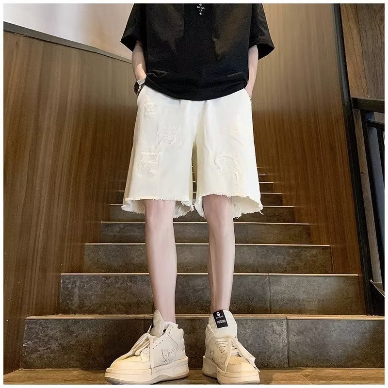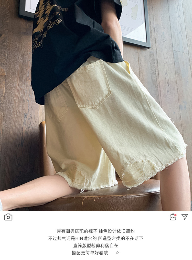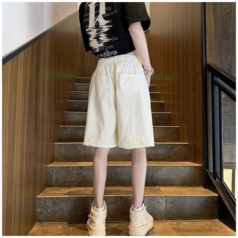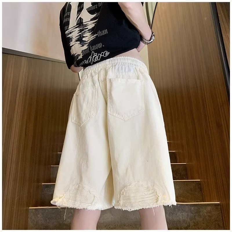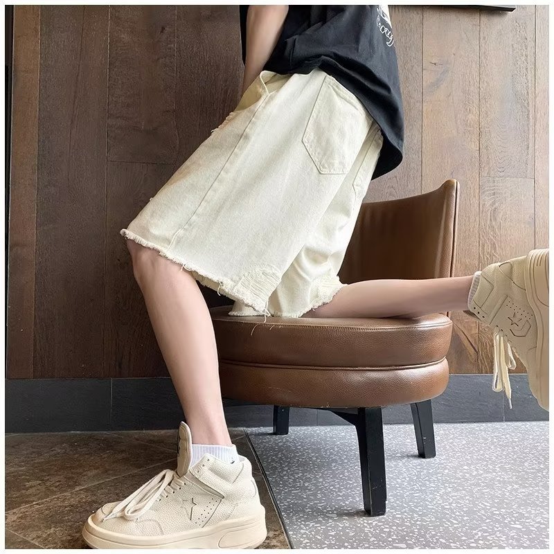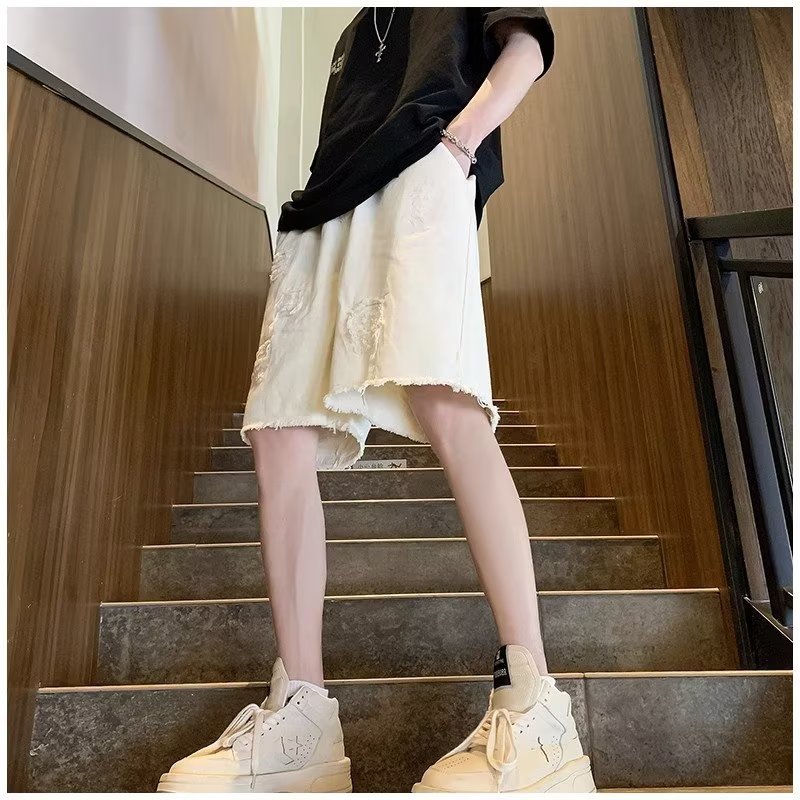 랩 데님 반바지 남자의 여름 디자인 감각 틈새 찢어진 패치 거지 바지 유행 브랜드 미국 분위기 바지스토어 가기