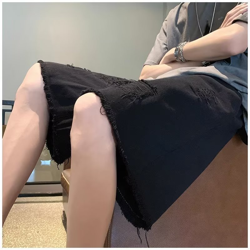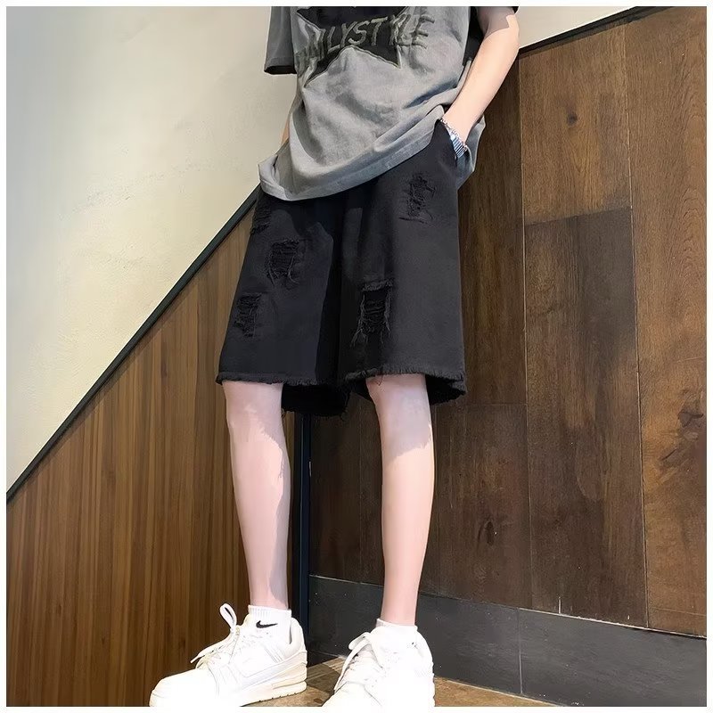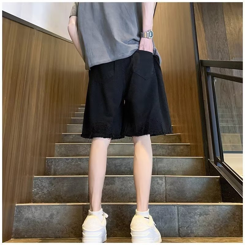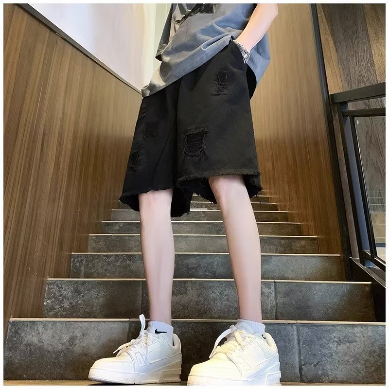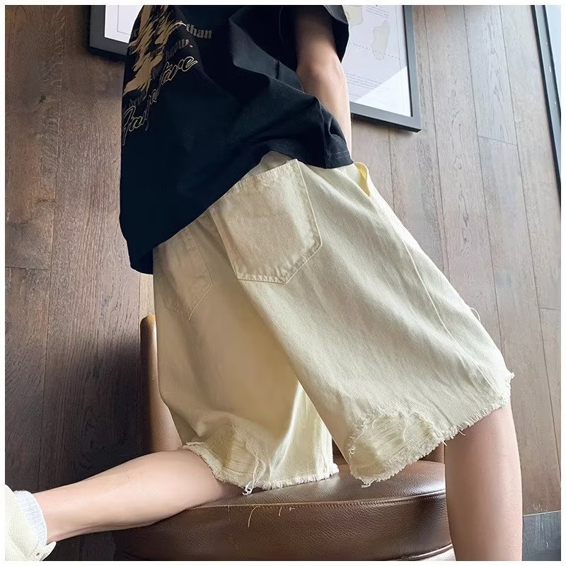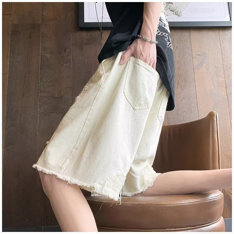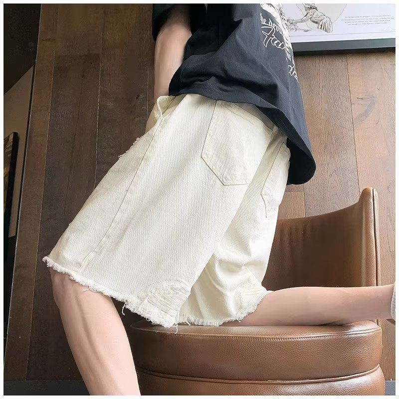 랩 데님 반바지 남자의 여름 디자인 감각 틈새 찢어진 패치 거지 바지 유행 브랜드 미국 분위기 바지스토어 가기