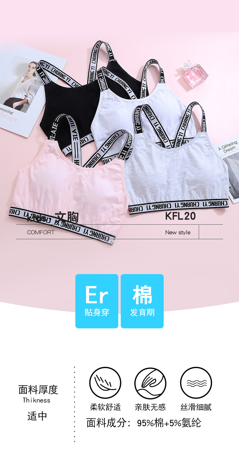 여아 발달 스포츠 속옷 여아 12 세 학생 와이드 숄더 조끼 여아 14 세 중학생 면 브라