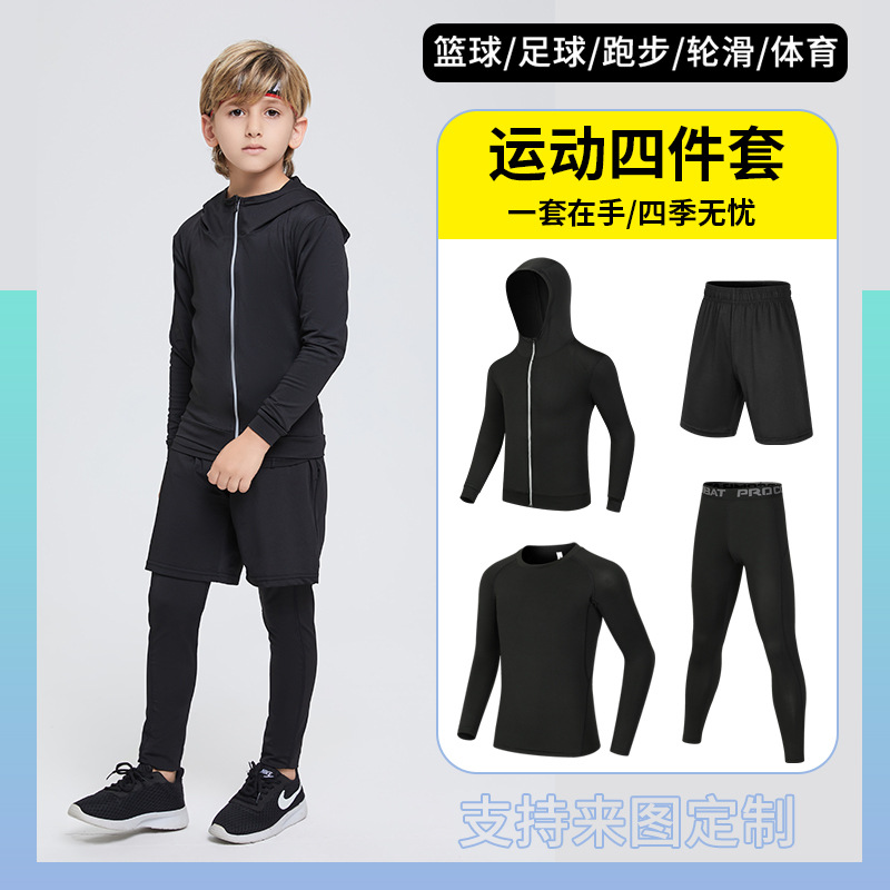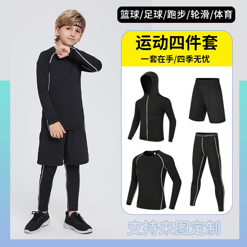 피트니스 의류 세트 맞춤 스포츠 달리기 남성 통기성 속건 야간 달리기 긴 소매 농구 훈련 의류 어린이 스타킹스토어 가기