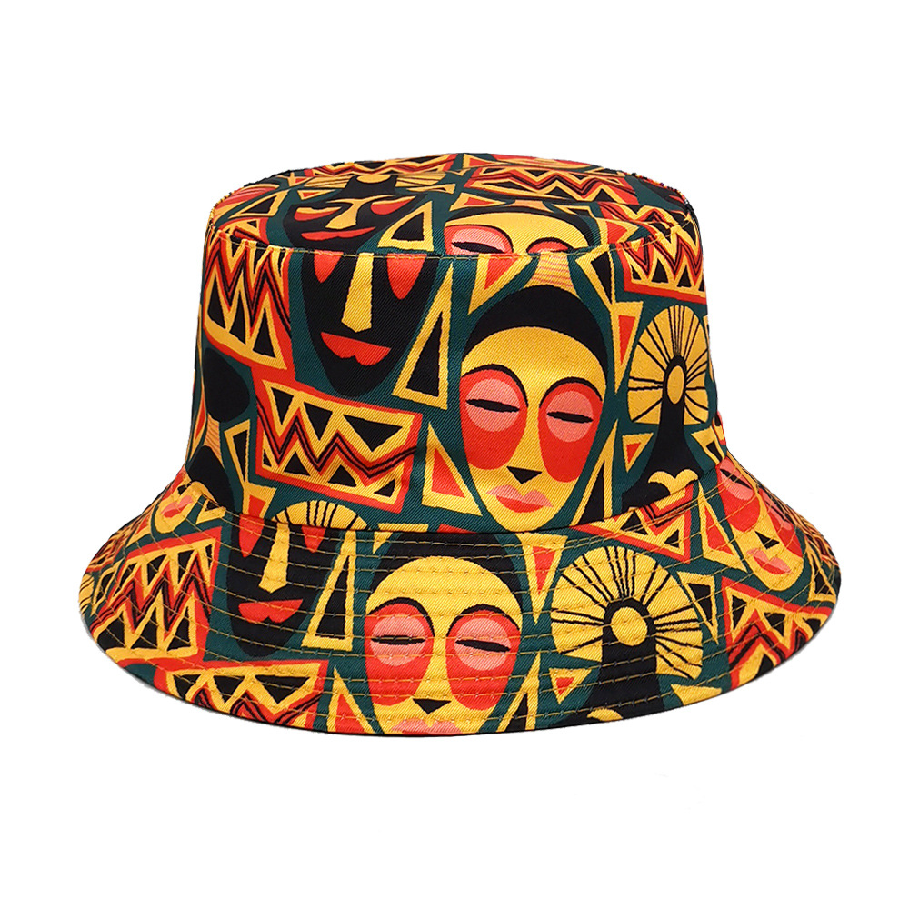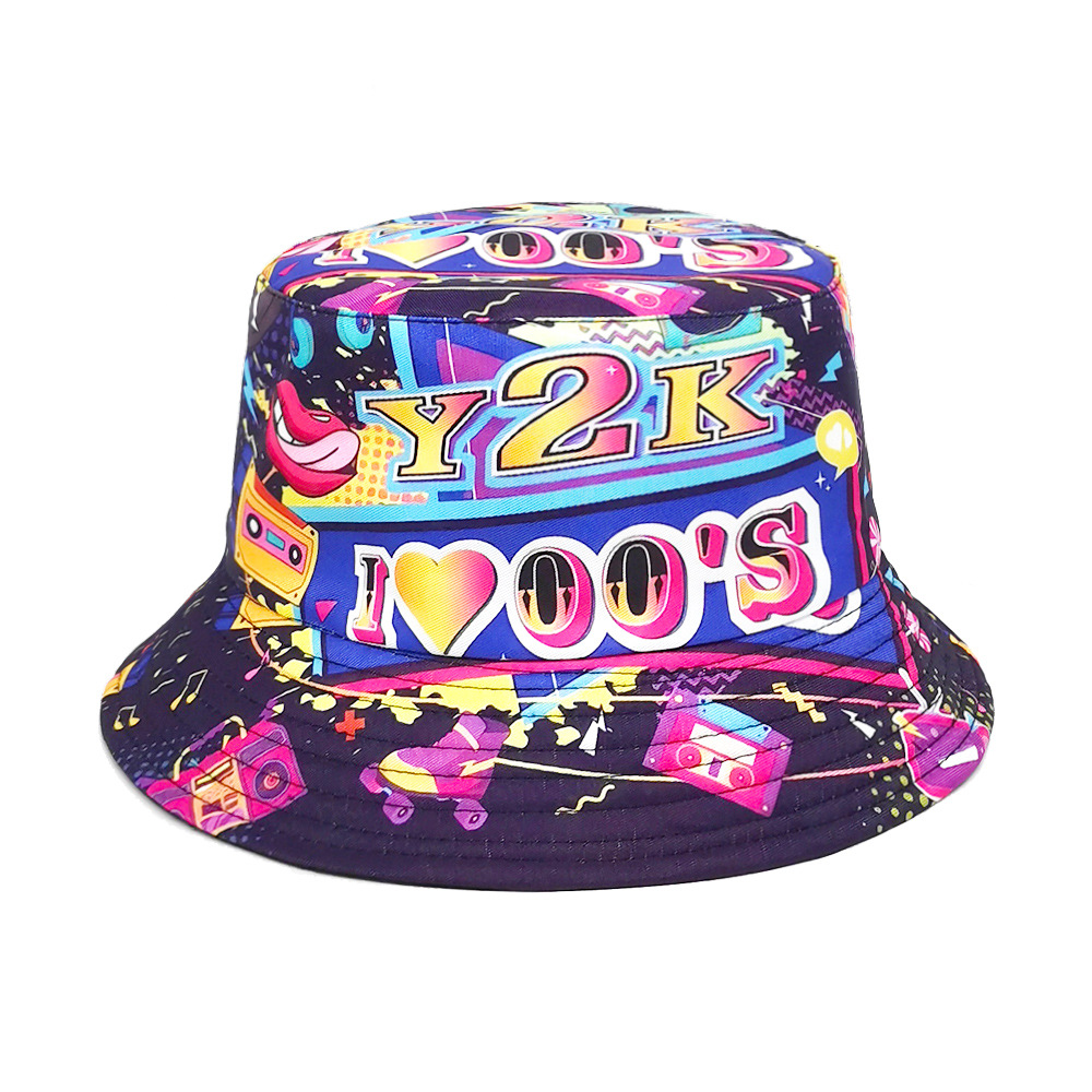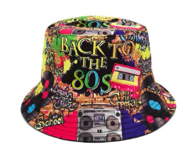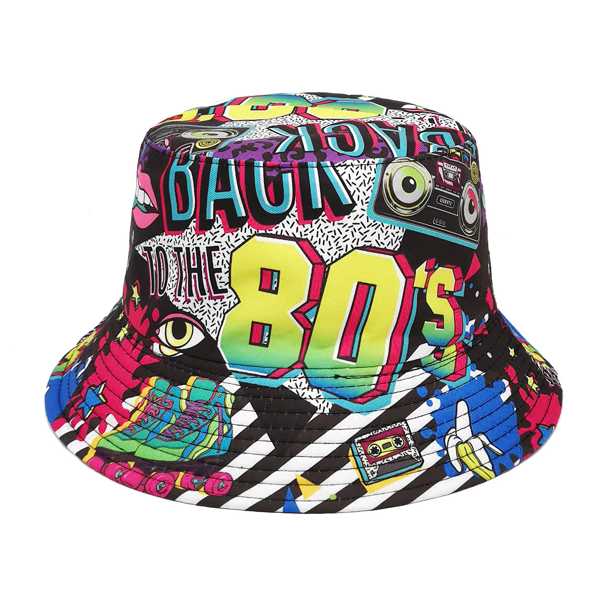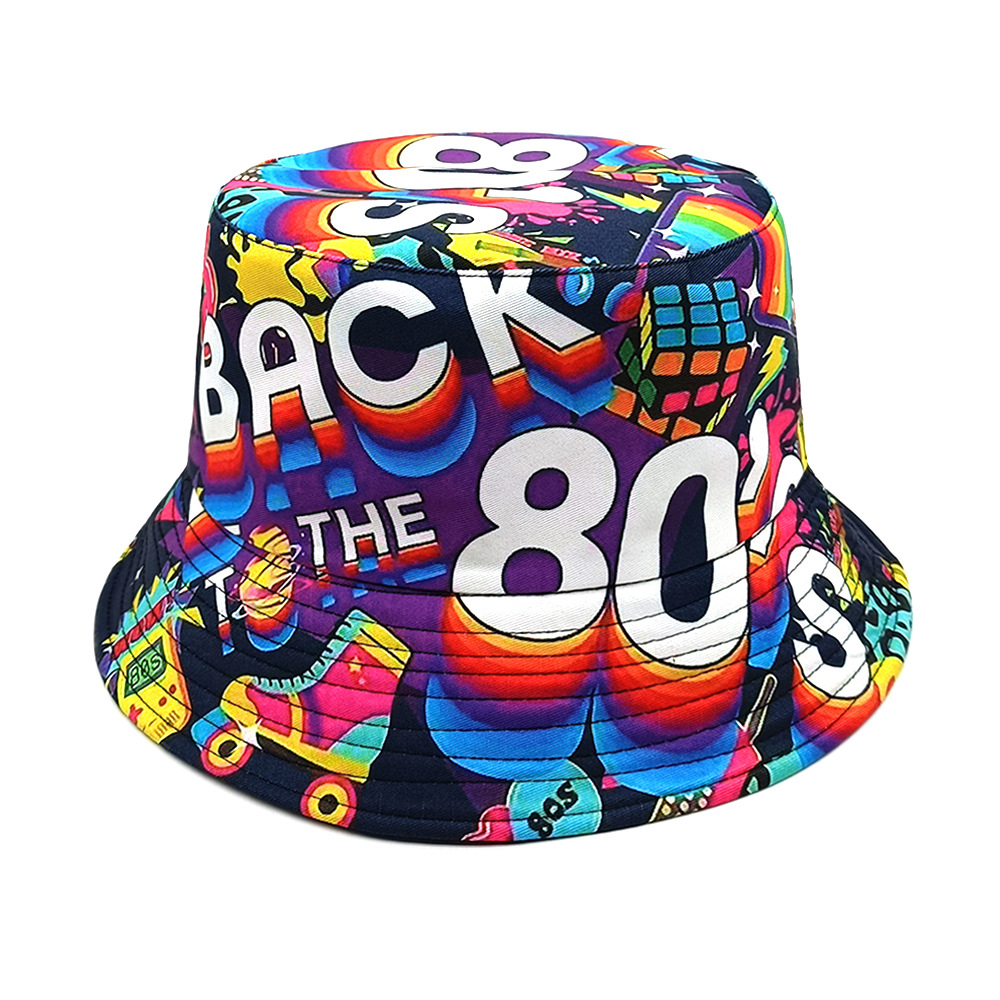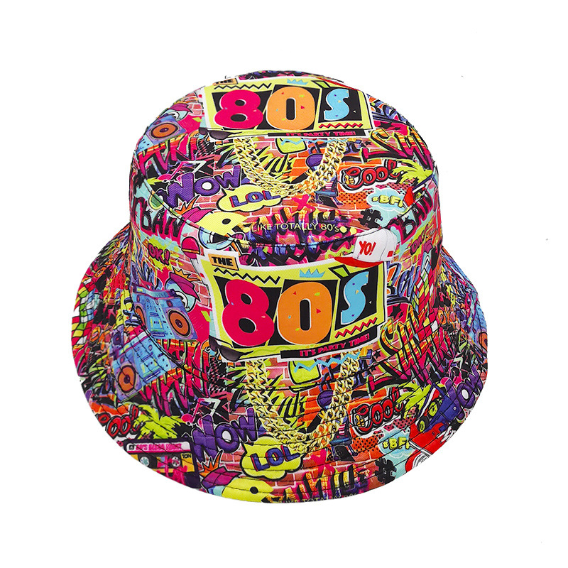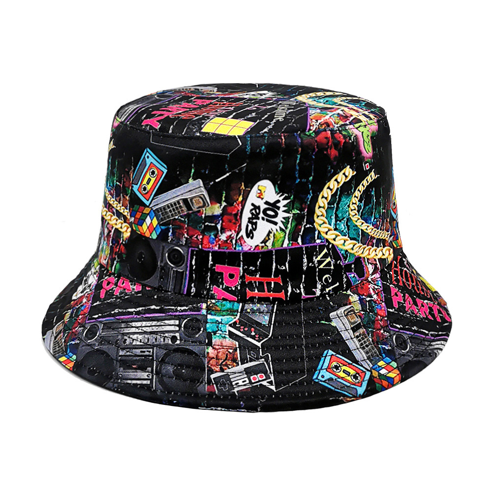 유럽과 미국 레트로 향수 80 년대 90 년대 테이프 패턴 어부 모자 여성용 양면 봄과 여름 남성용 야외 자외선 차단제 모자