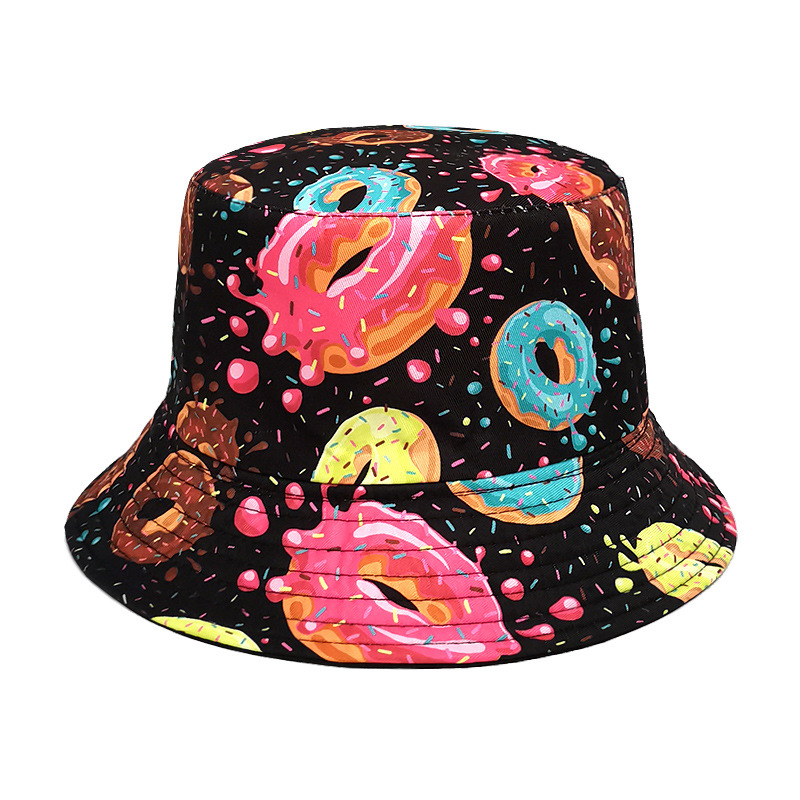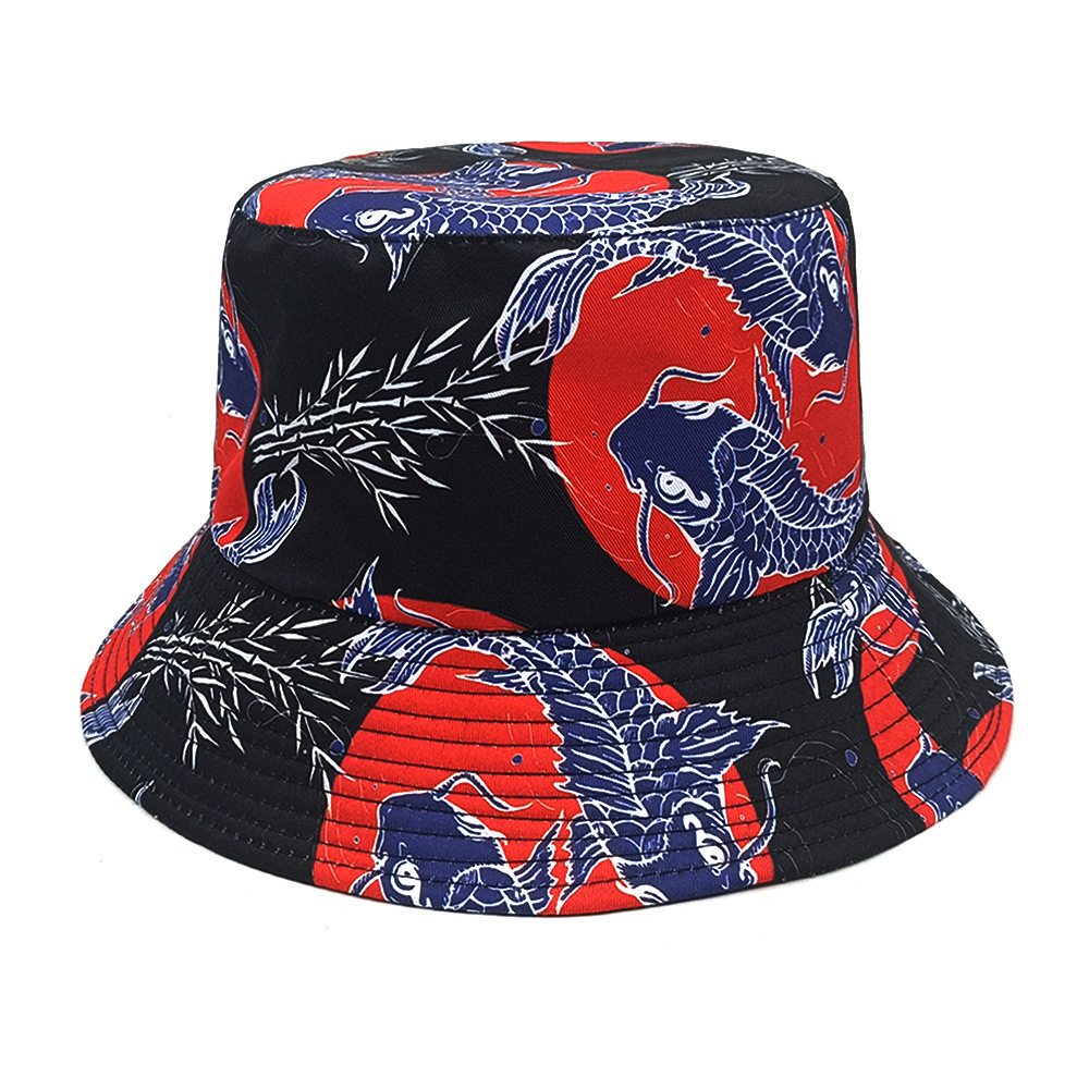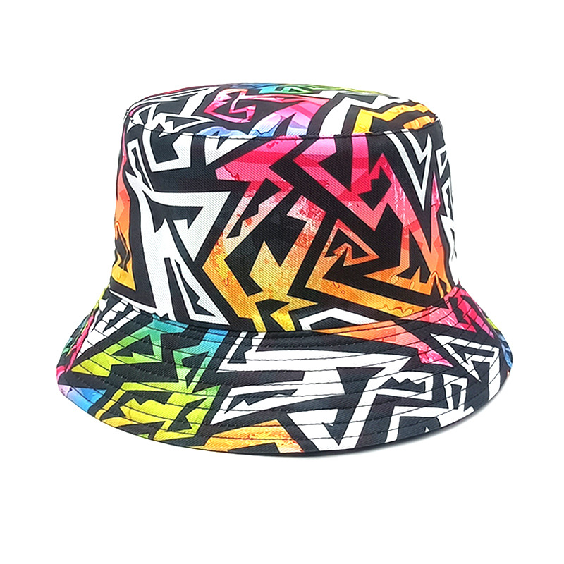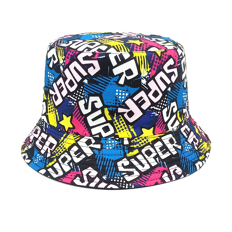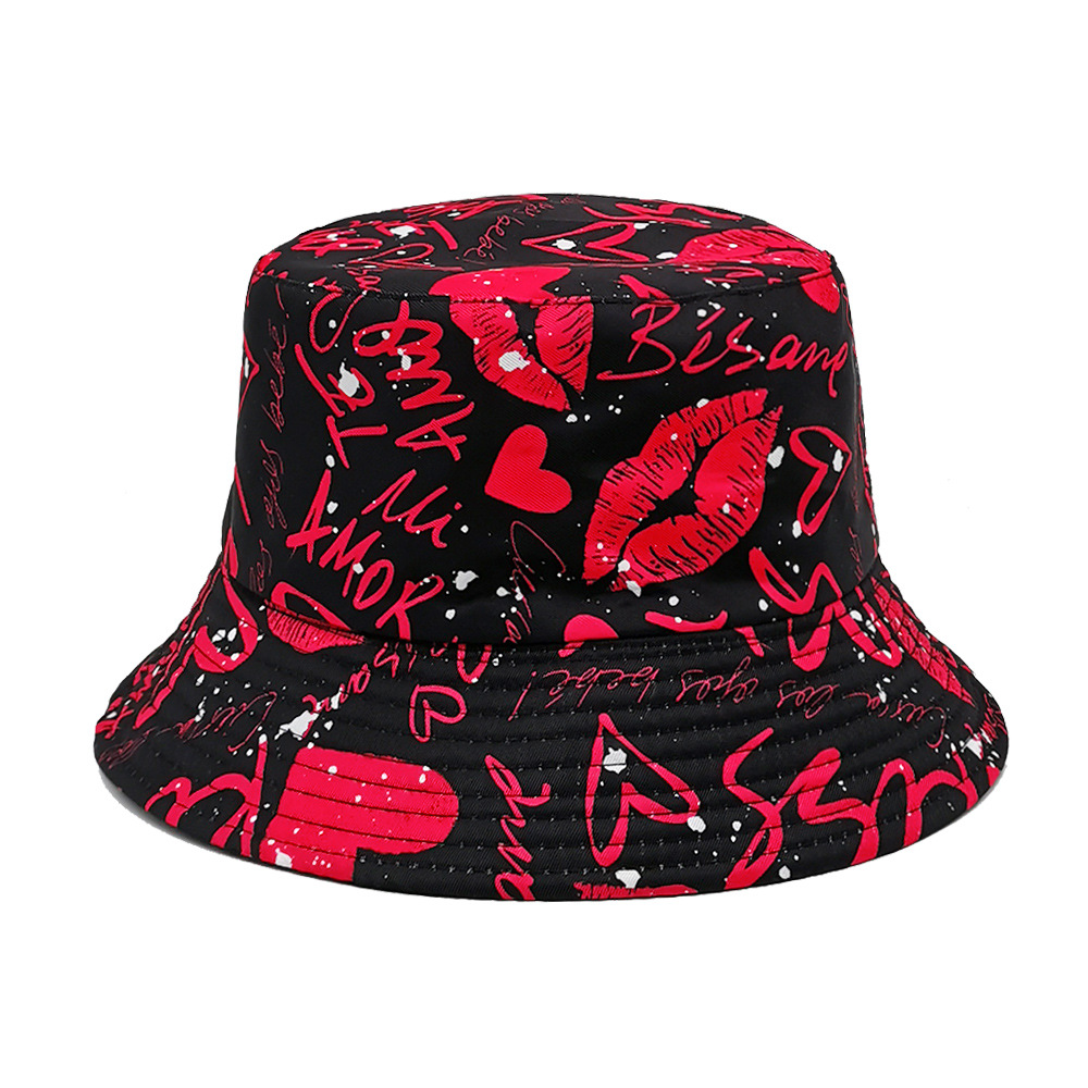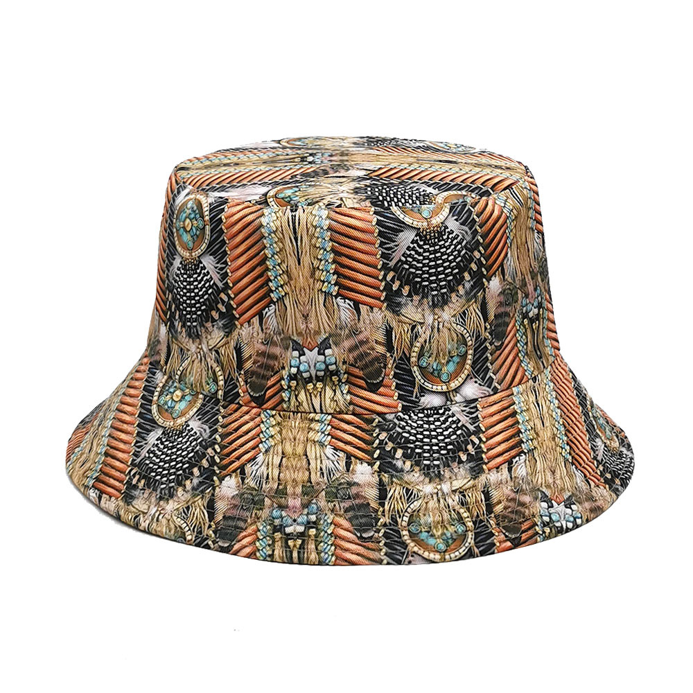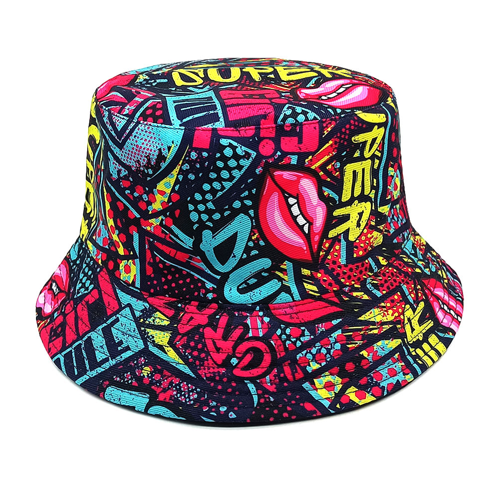 유럽과 미국 레트로 향수 80 년대 90 년대 테이프 패턴 어부 모자 여성용 양면 봄과 여름 남성용 야외 자외선 차단제 모자