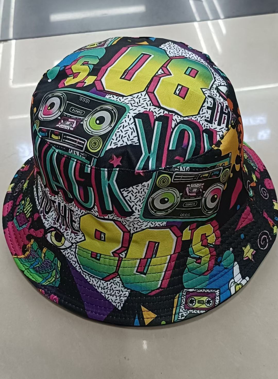 유럽과 미국 레트로 향수 80 년대 90 년대 테이프 패턴 어부 모자 여성용 양면 봄과 여름 남성용 야외 자외선 차단제 모자스토어 가기
