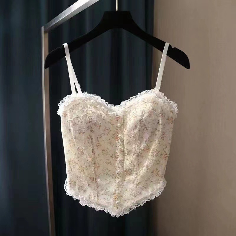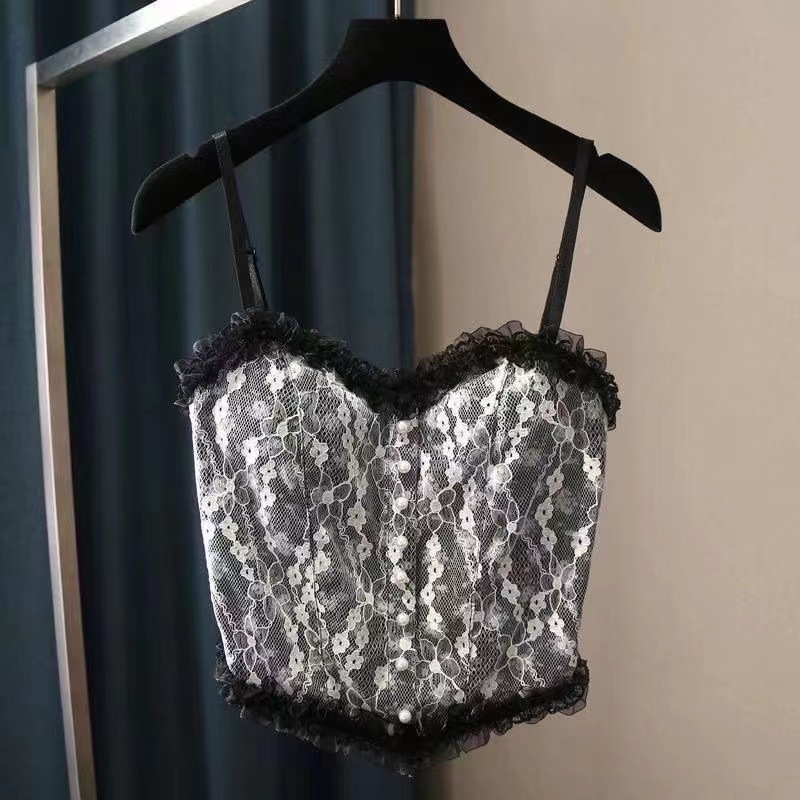 캐미솔 여성의 가을과 겨울 새로운 우아한 레이스 디자인 감각 끈이없는 바닥 가슴 랩 섹시한 겉옷 내부 탑