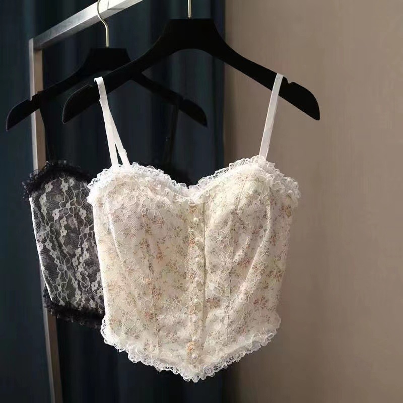 캐미솔 여성의 가을과 겨울 새로운 우아한 레이스 디자인 감각 끈이없는 바닥 가슴 랩 섹시한 겉옷 내부 탑스토어 가기
