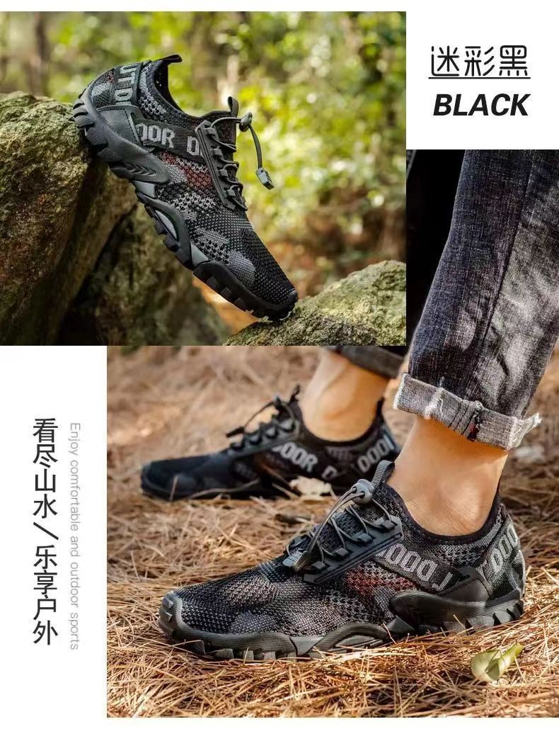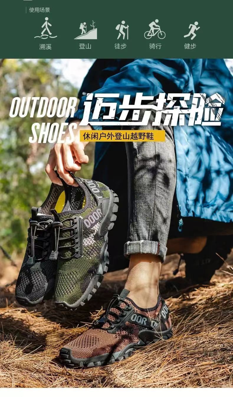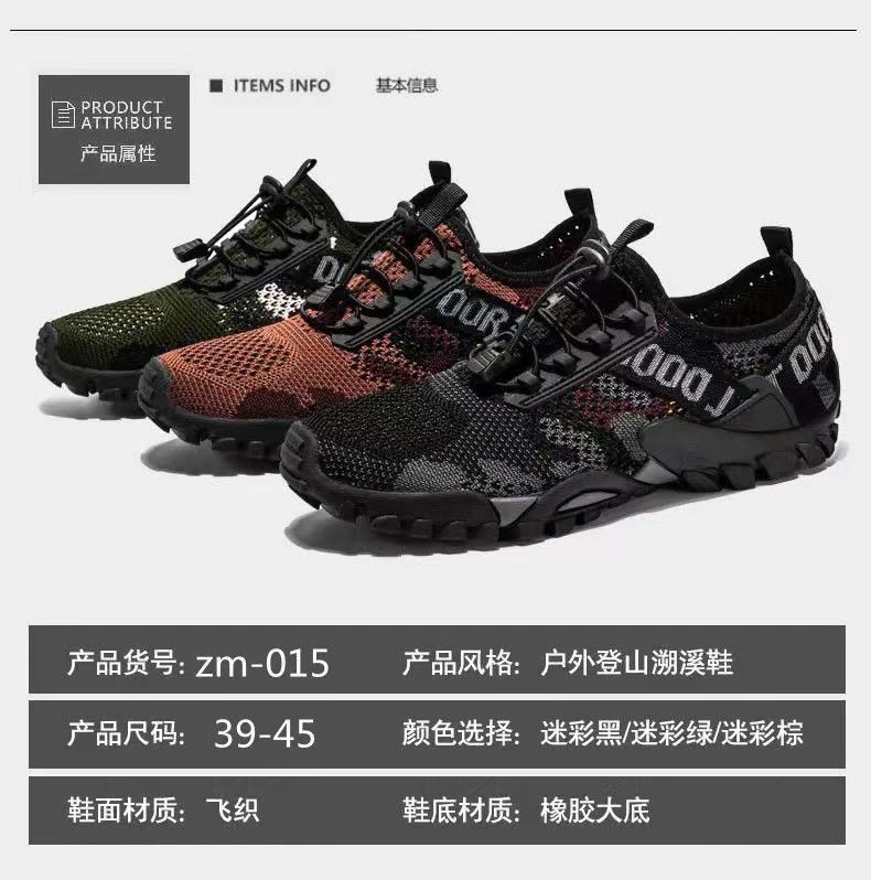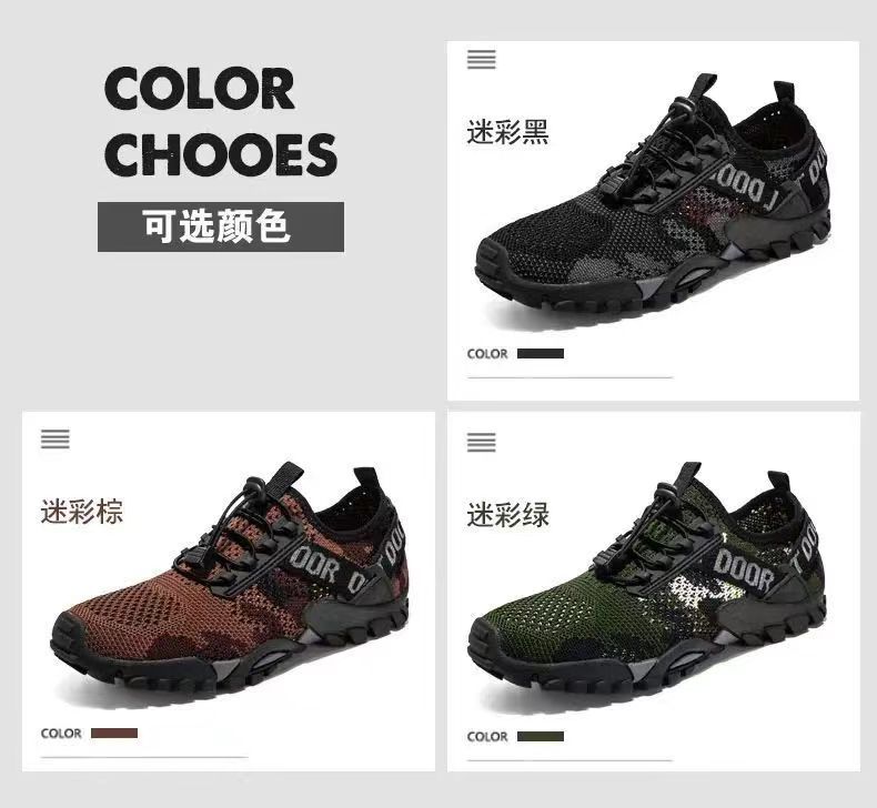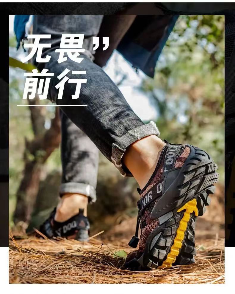 워터슈즈, 아웃도어 등산화, 편안하고 통기성 좋은 남성 스포츠화, 통통슈즈, 부드러운 밑창, 카모플라주 캐주얼 남성화 도매스토어 가기