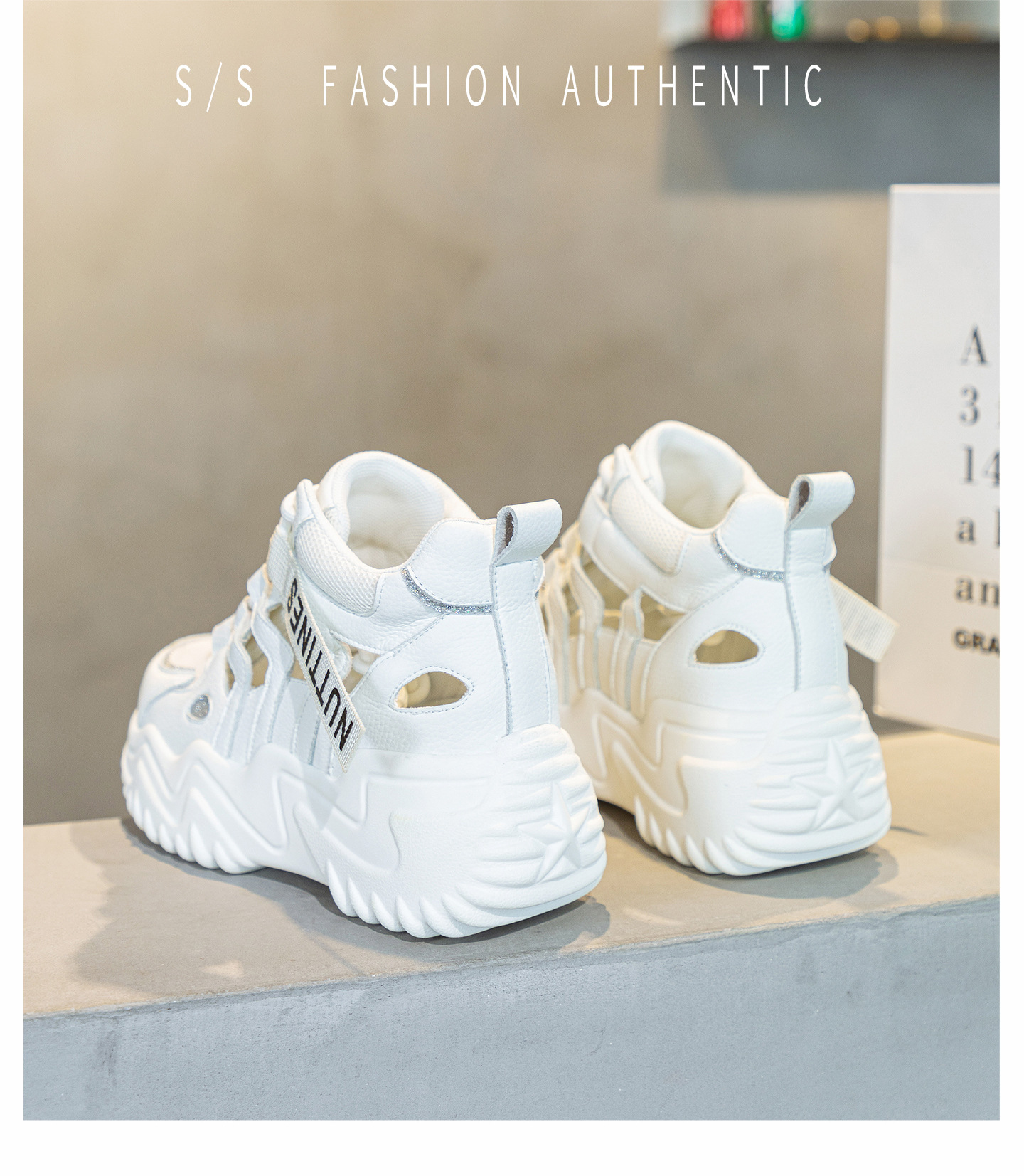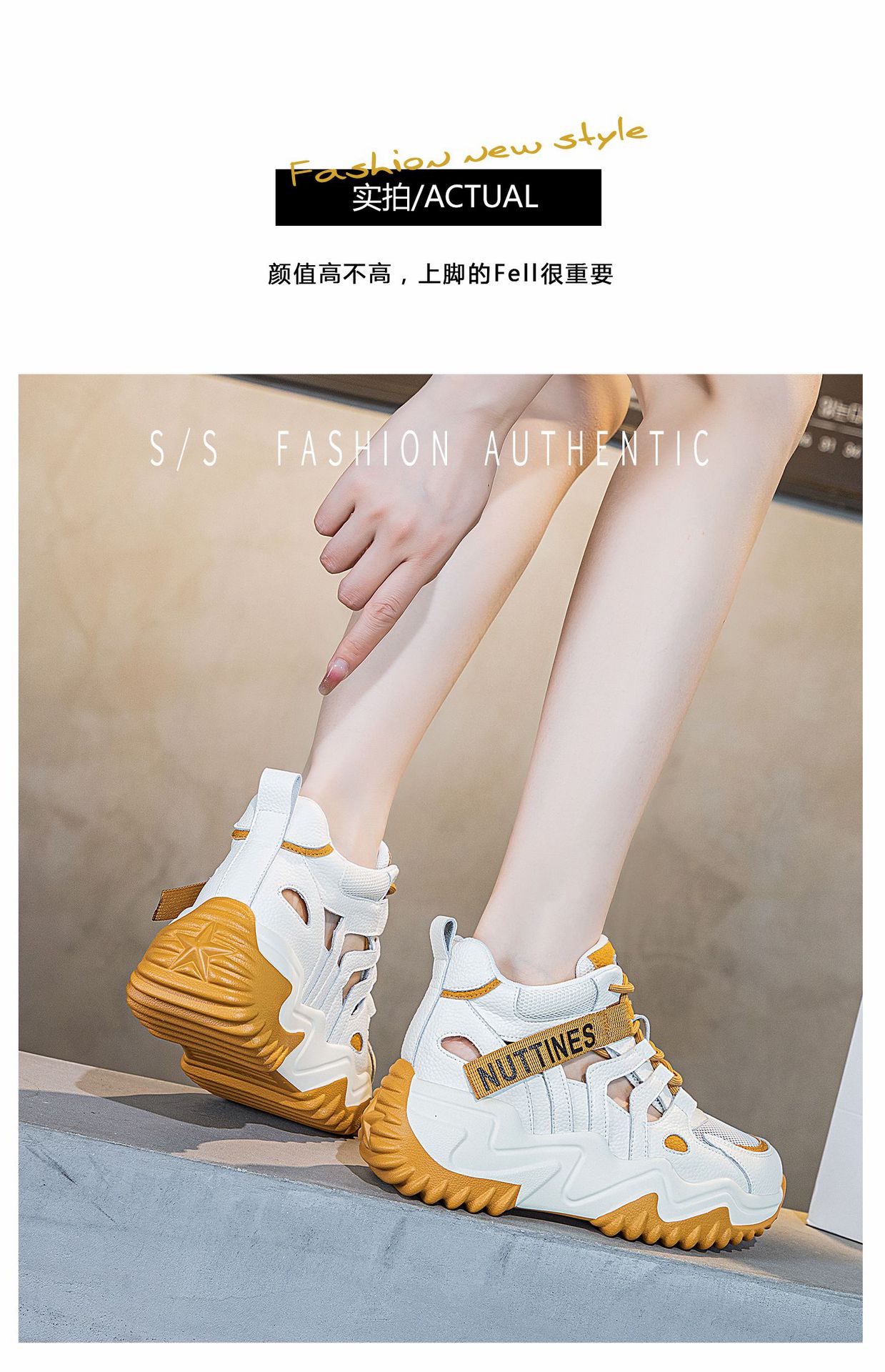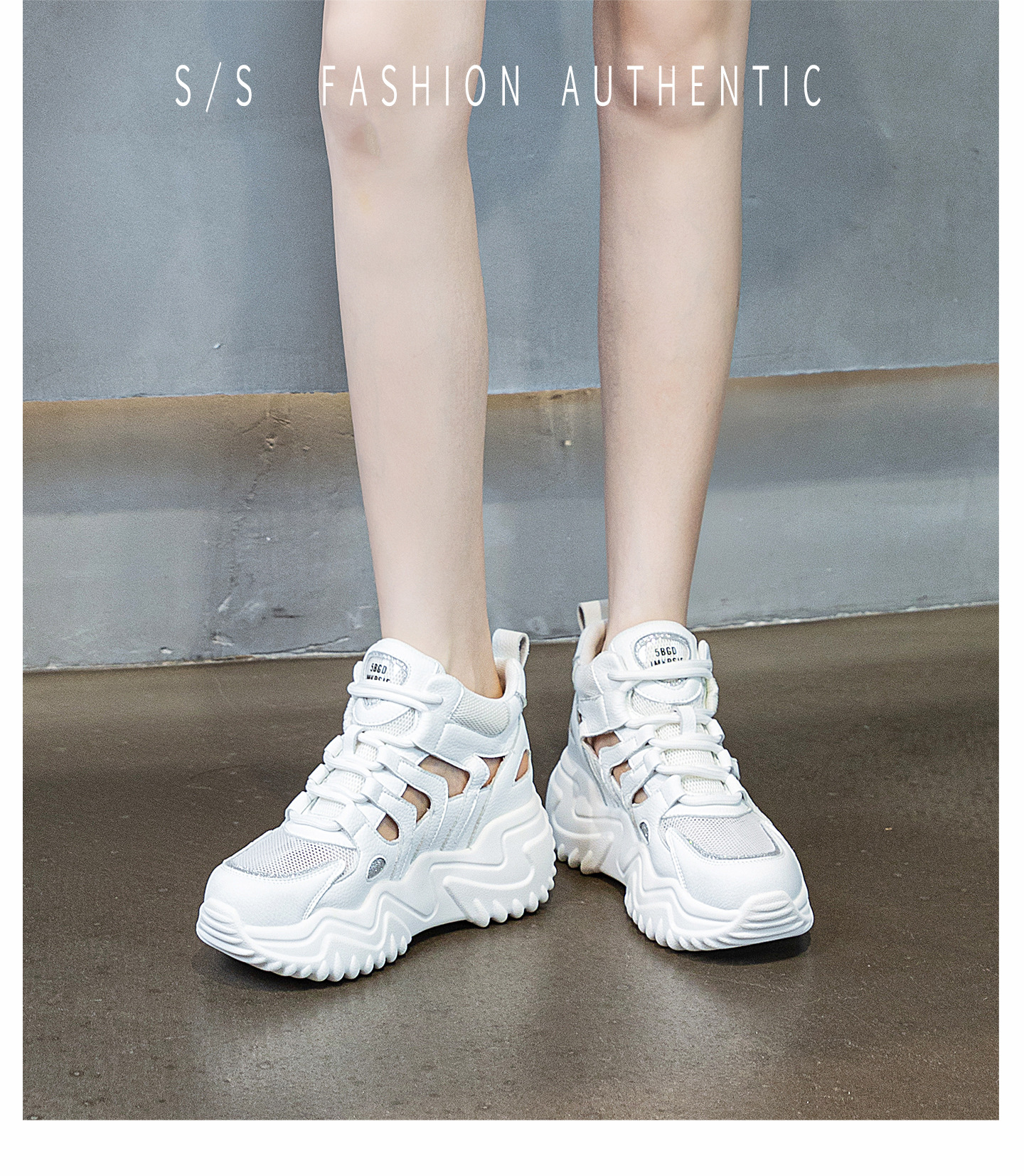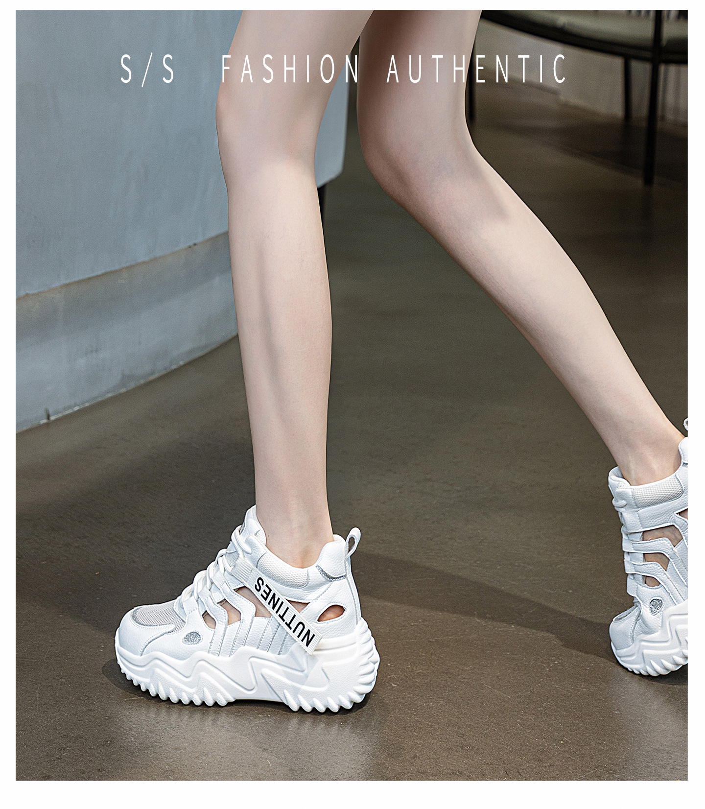 가을 2023 새로운 정품 가죽 흰색 신발 통기성 캐주얼 내부 높이 증가 아빠 신발 모든 일치 중공 캐주얼 신발 여성 신발스토어 가기