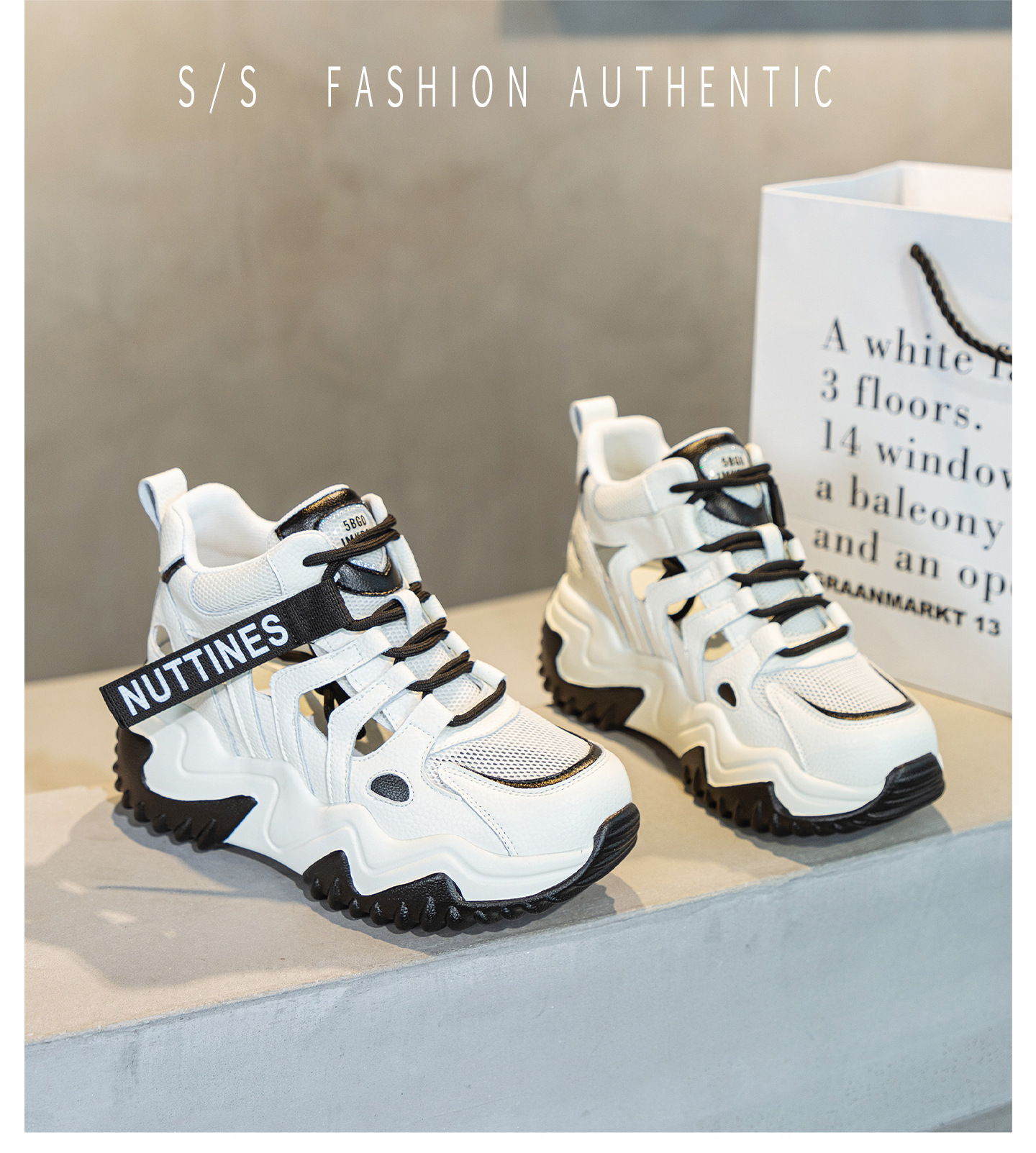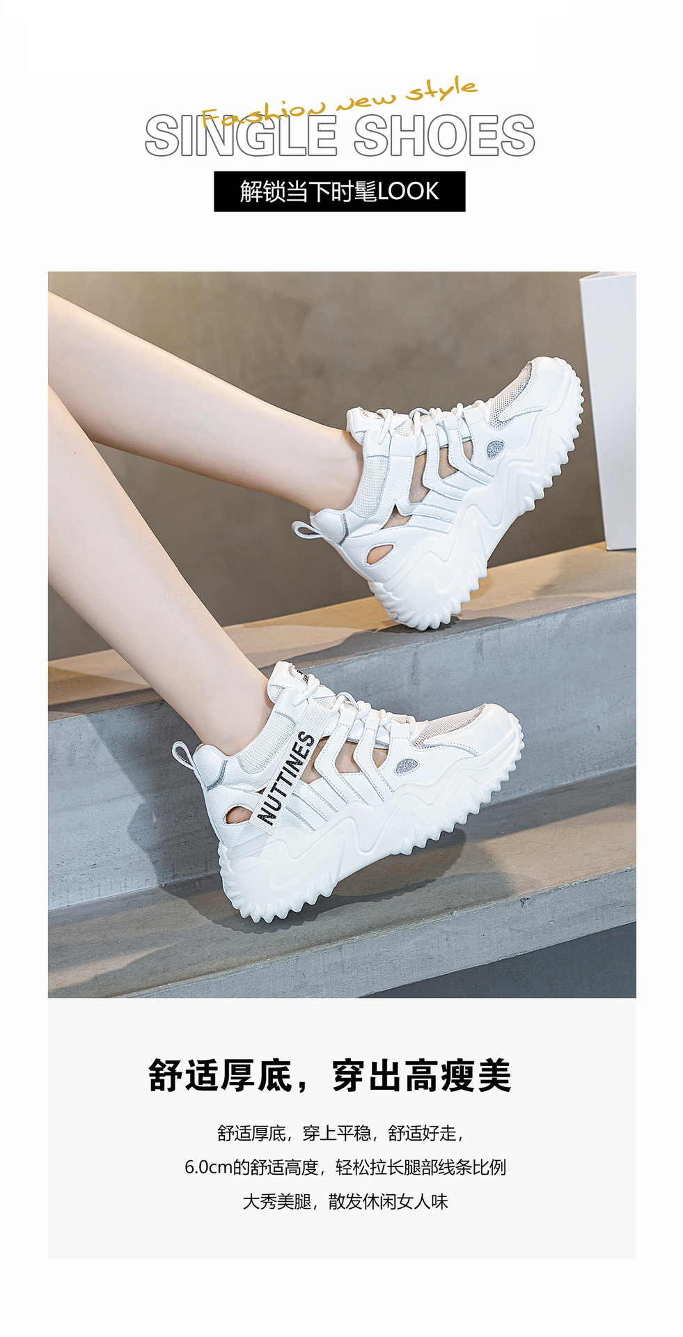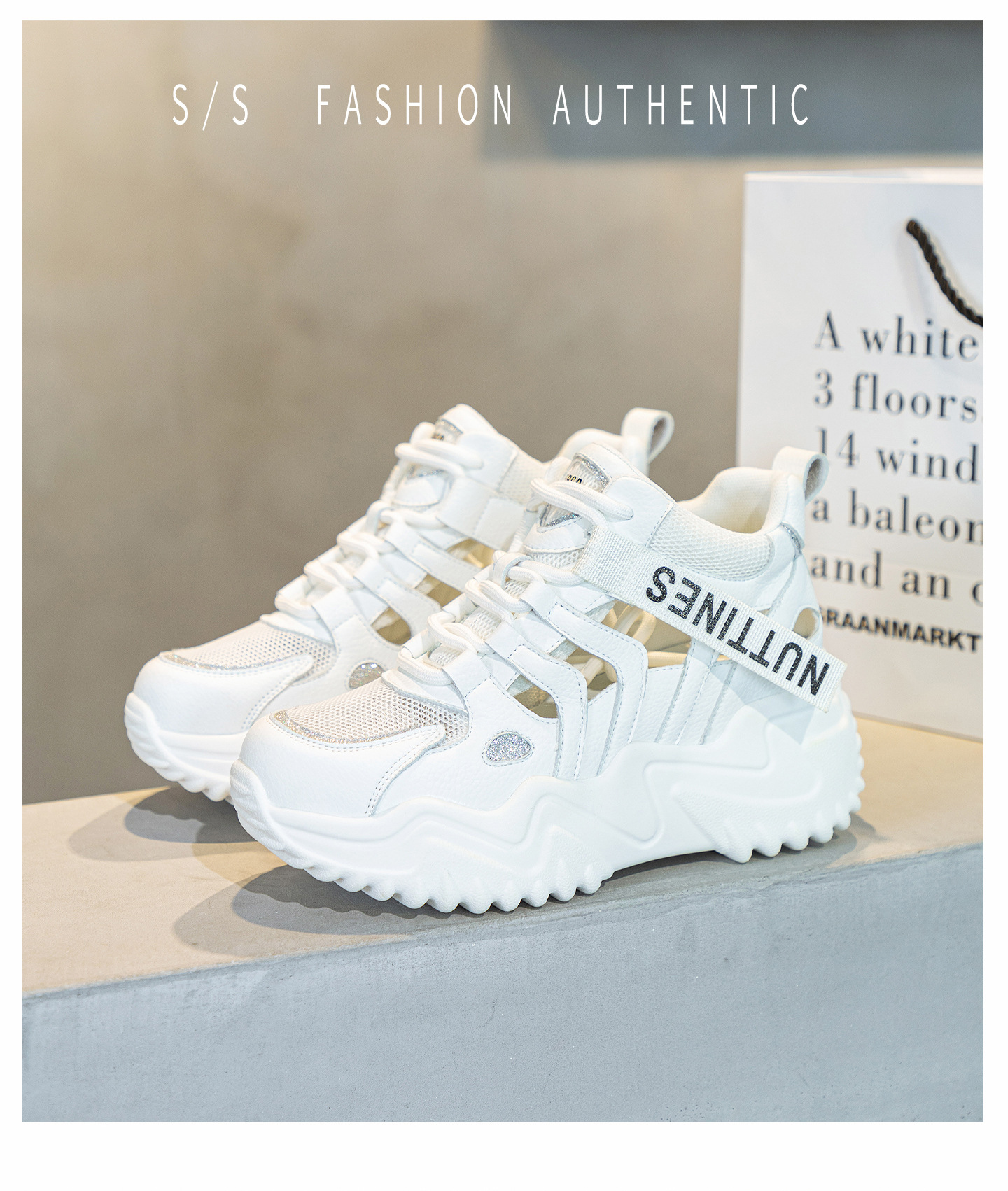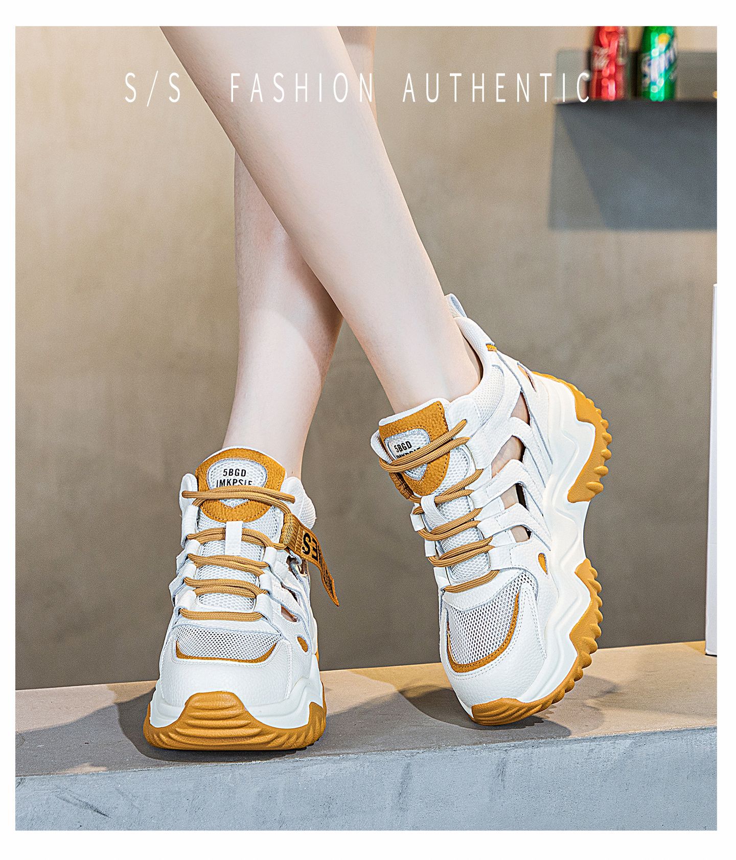 가을 2023 새로운 정품 가죽 흰색 신발 통기성 캐주얼 내부 높이 증가 아빠 신발 모든 일치 중공 캐주얼 신발 여성 신발스토어 가기