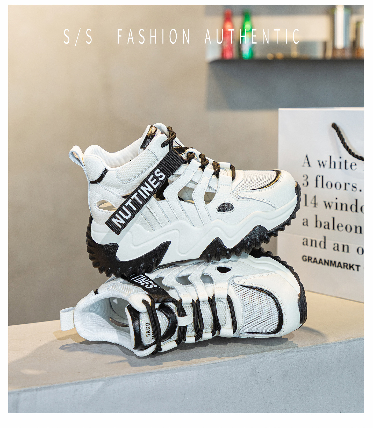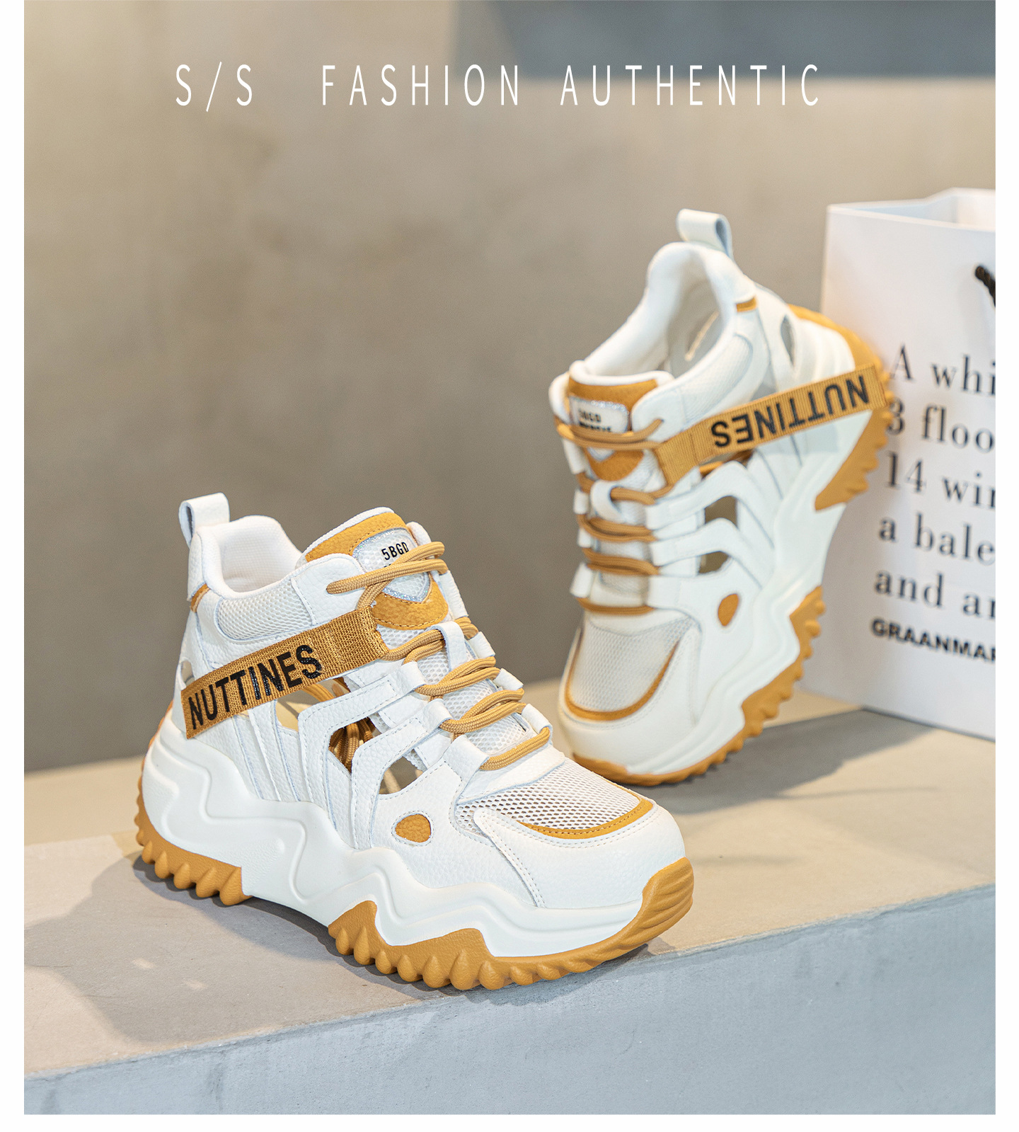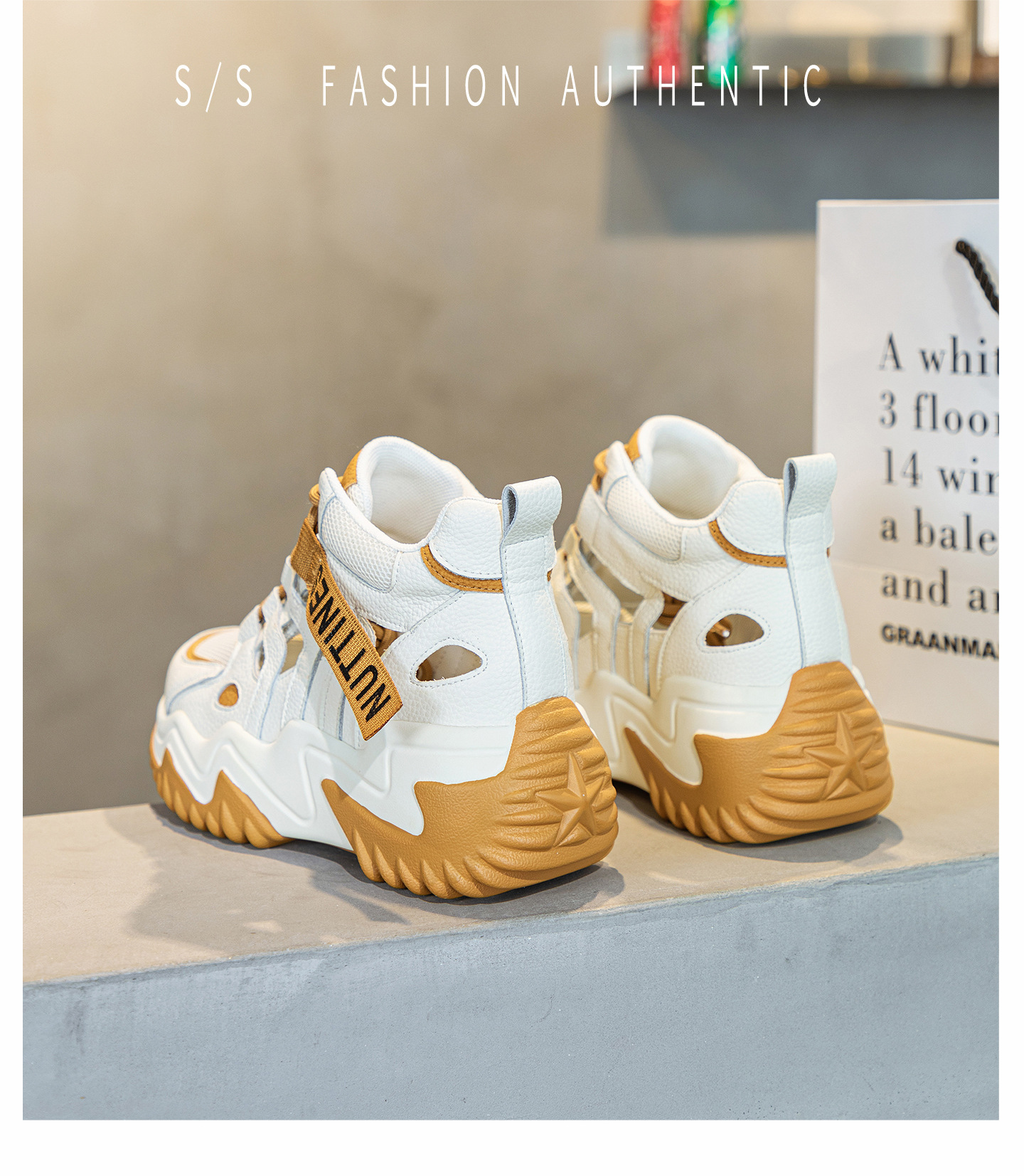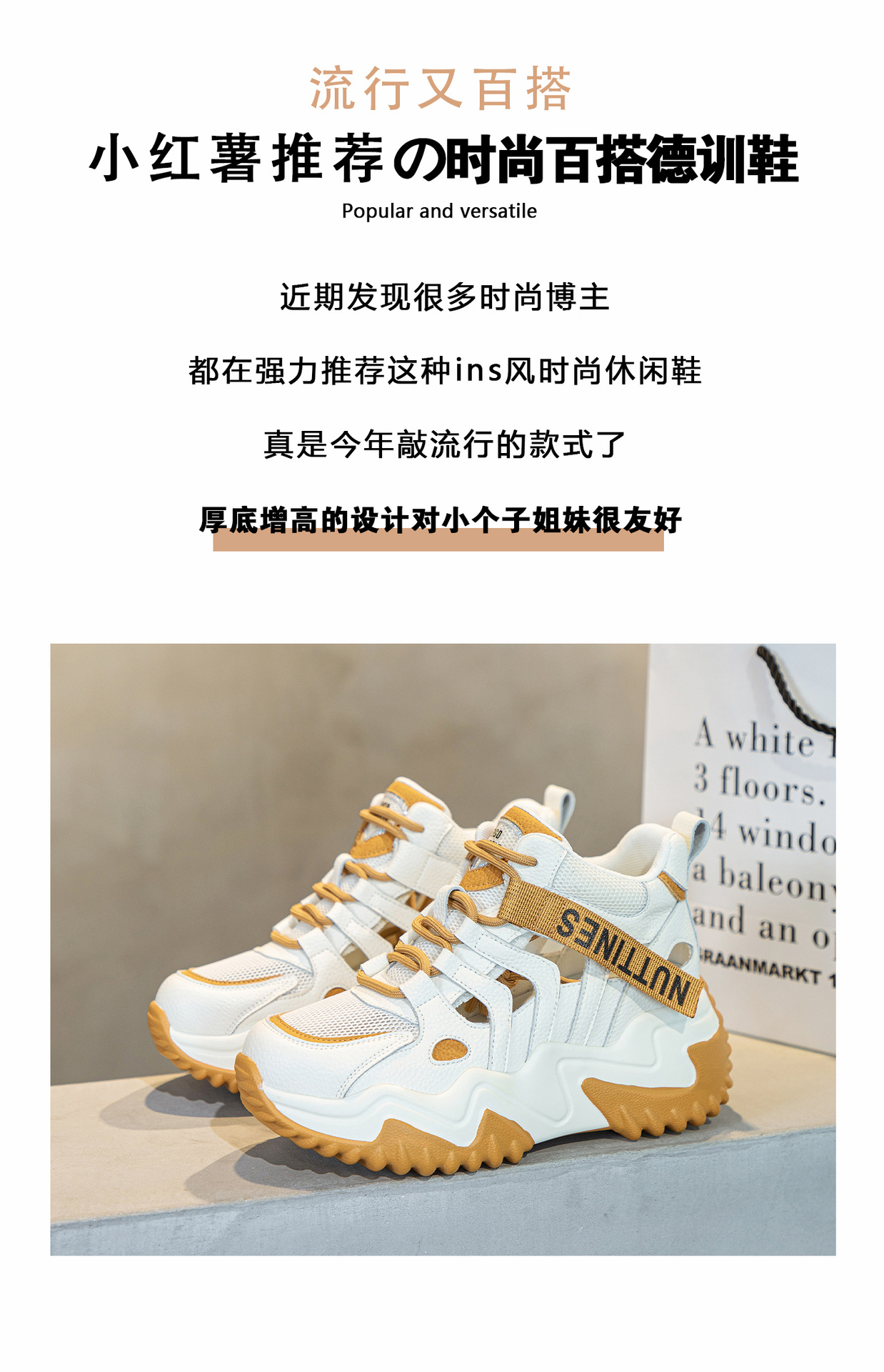가을 2023 새로운 정품 가죽 흰색 신발 통기성 캐주얼 내부 높이 증가 아빠 신발 모든 일치 중공 캐주얼 신발 여성 신발스토어 가기