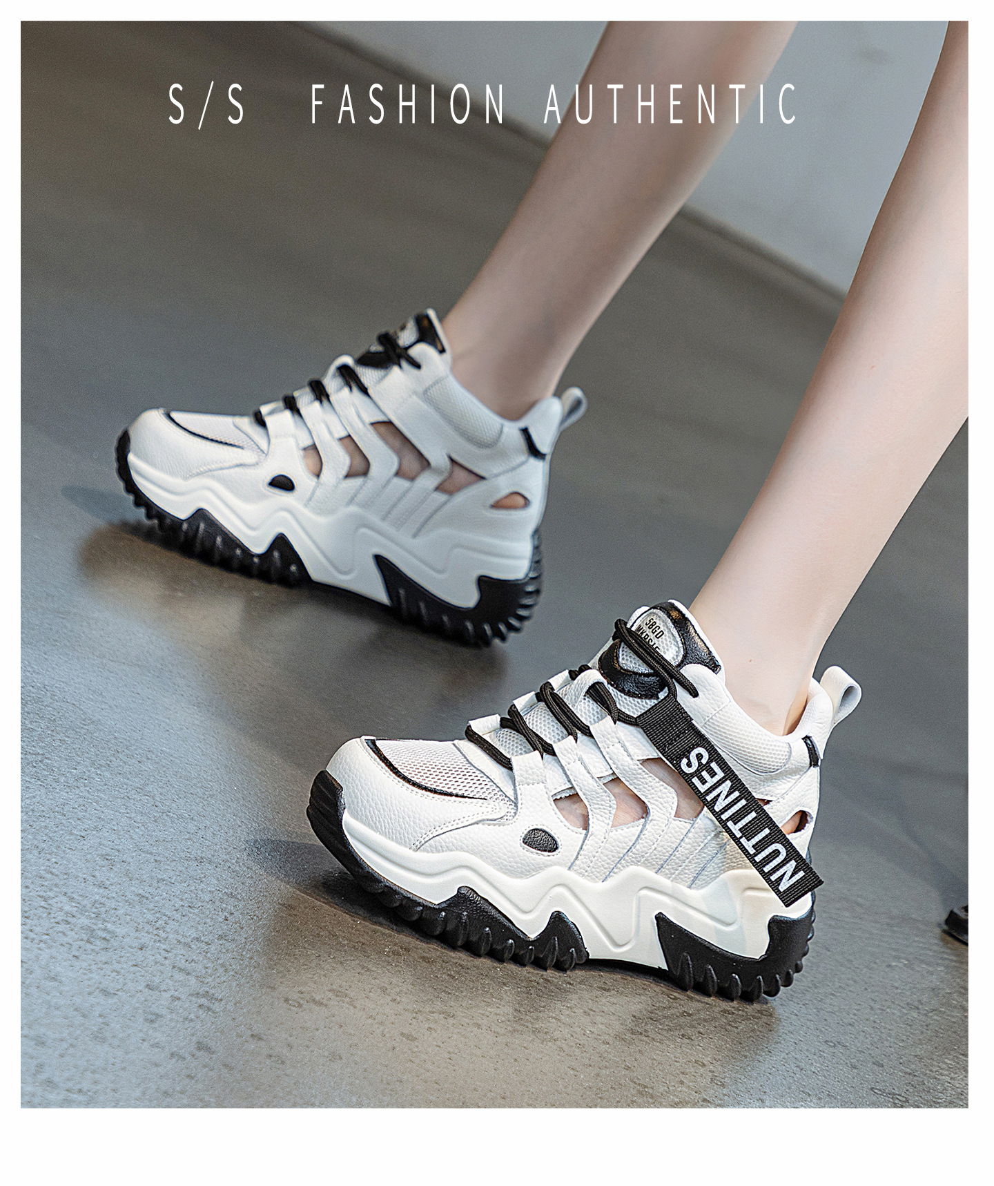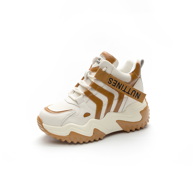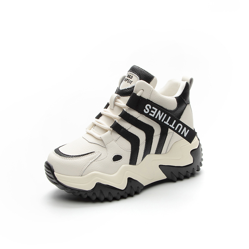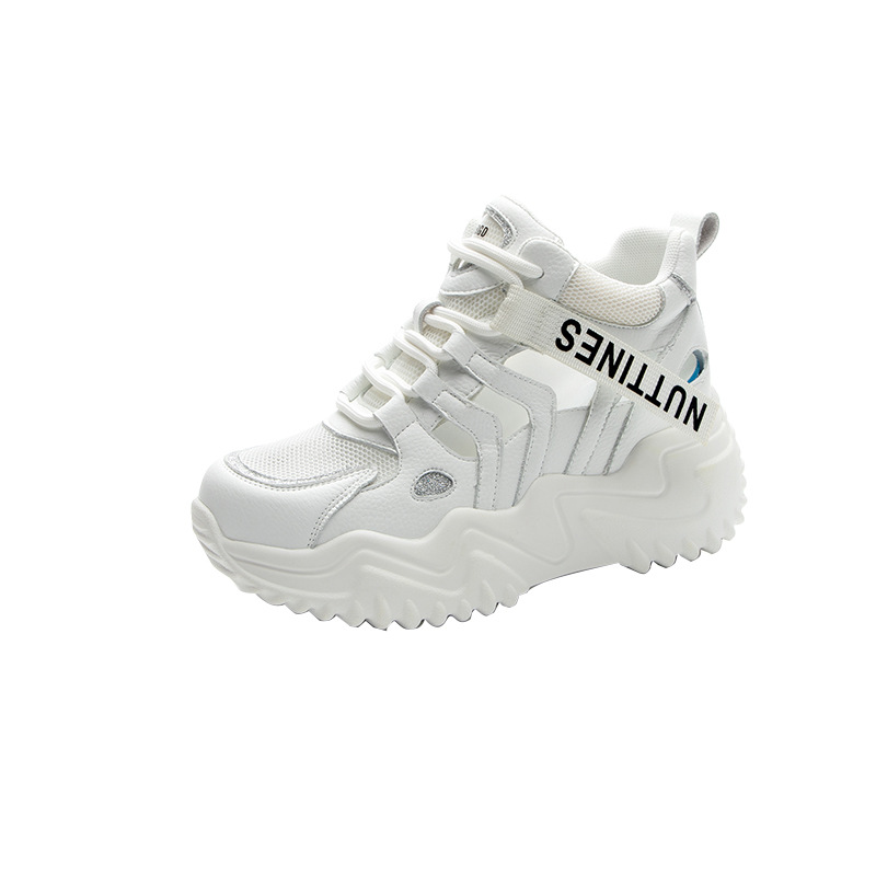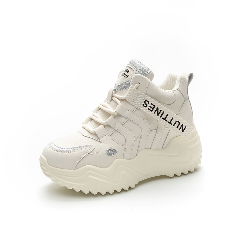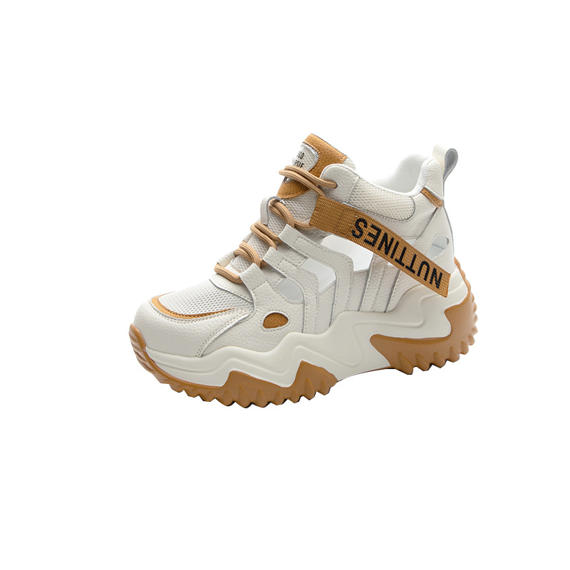 가을 2023 새로운 정품 가죽 흰색 신발 통기성 캐주얼 내부 높이 증가 아빠 신발 모든 일치 중공 캐주얼 신발 여성 신발