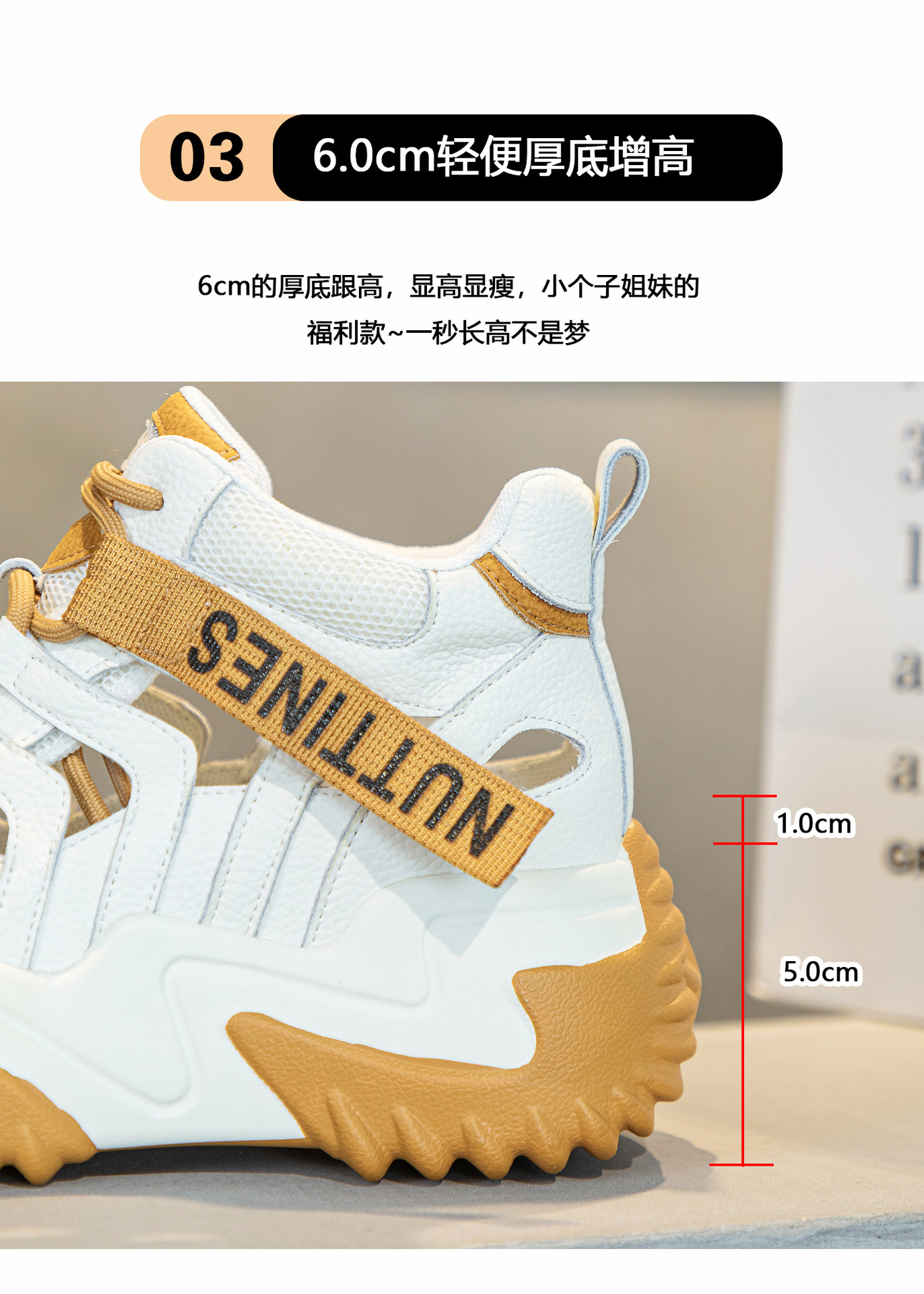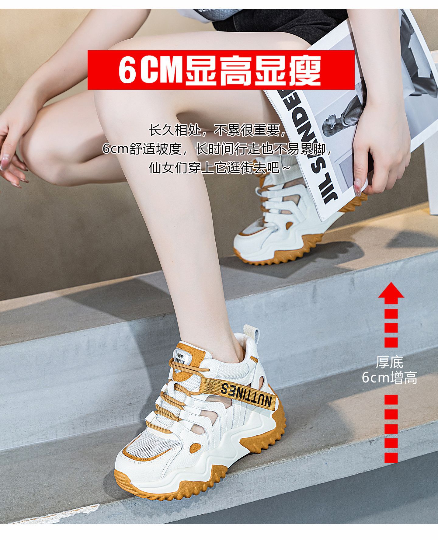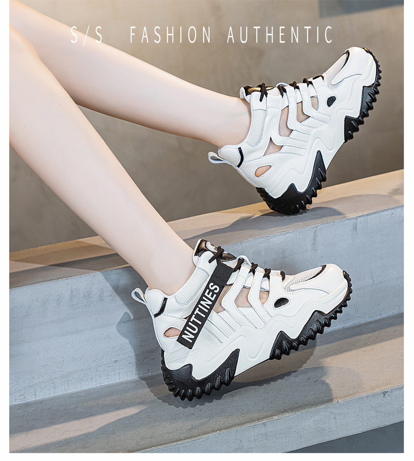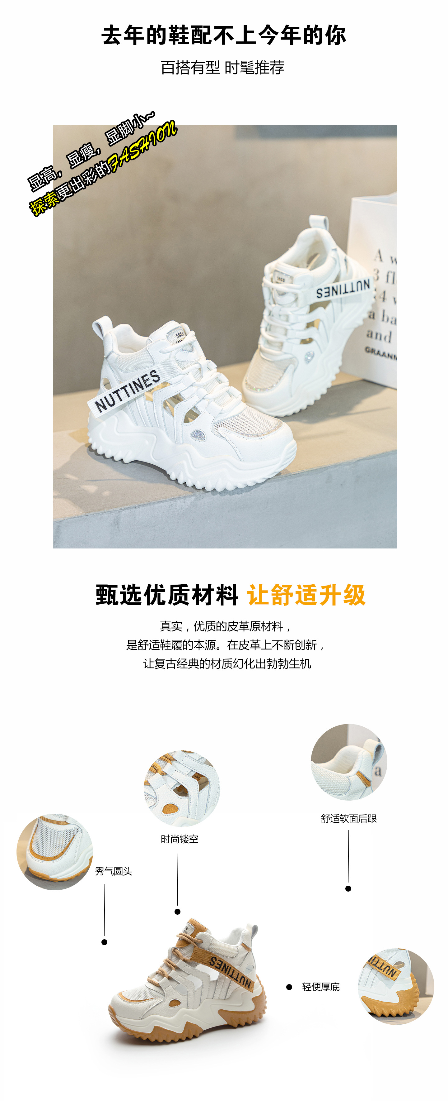 가을 2023 새로운 정품 가죽 흰색 신발 통기성 캐주얼 내부 높이 증가 아빠 신발 모든 일치 중공 캐주얼 신발 여성 신발