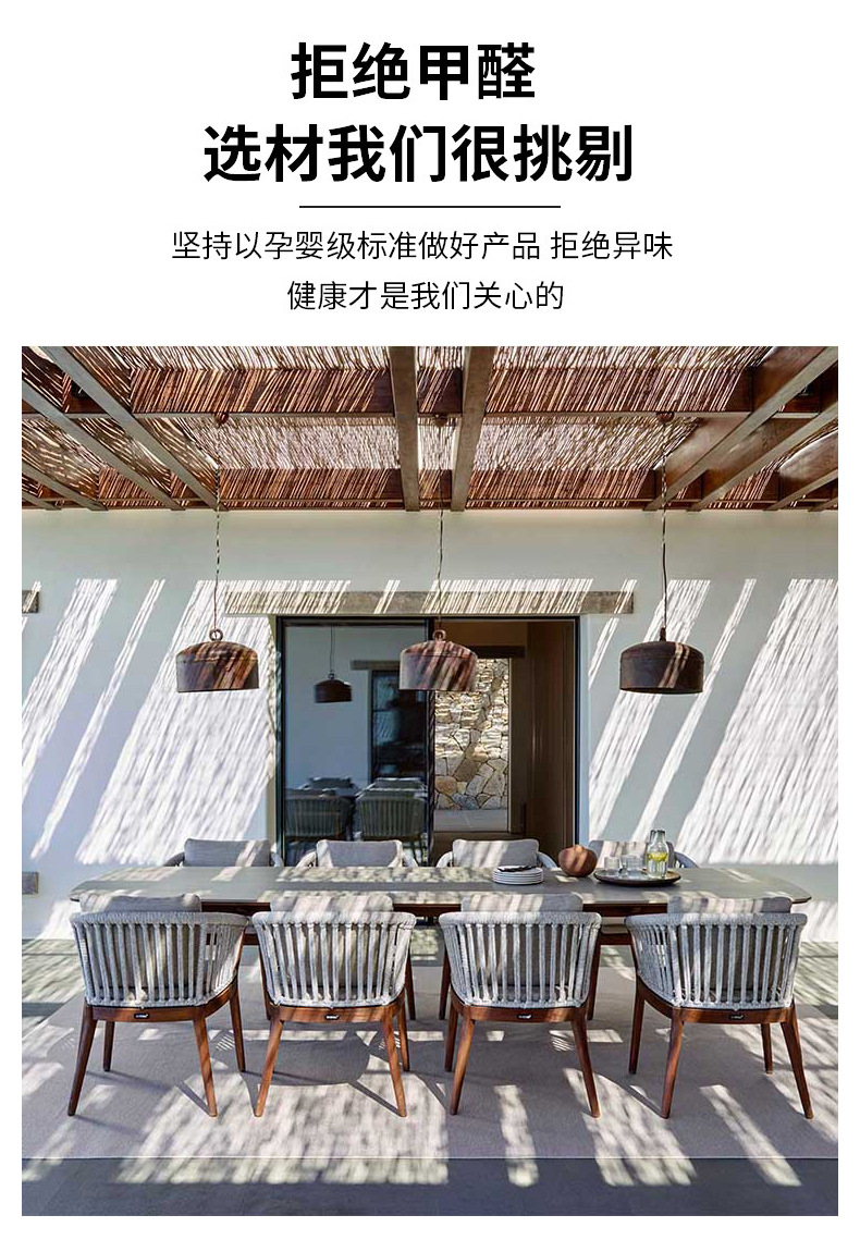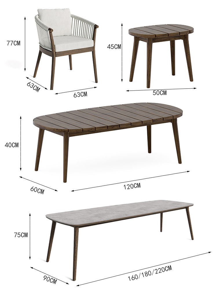 맞춤형 북유럽 스타일 야외 원목 테이블과 의자, 정원 빌라 티크 원목 식탁과 의자, 가정용 방부목 티크 라탄 가구스토어 가기