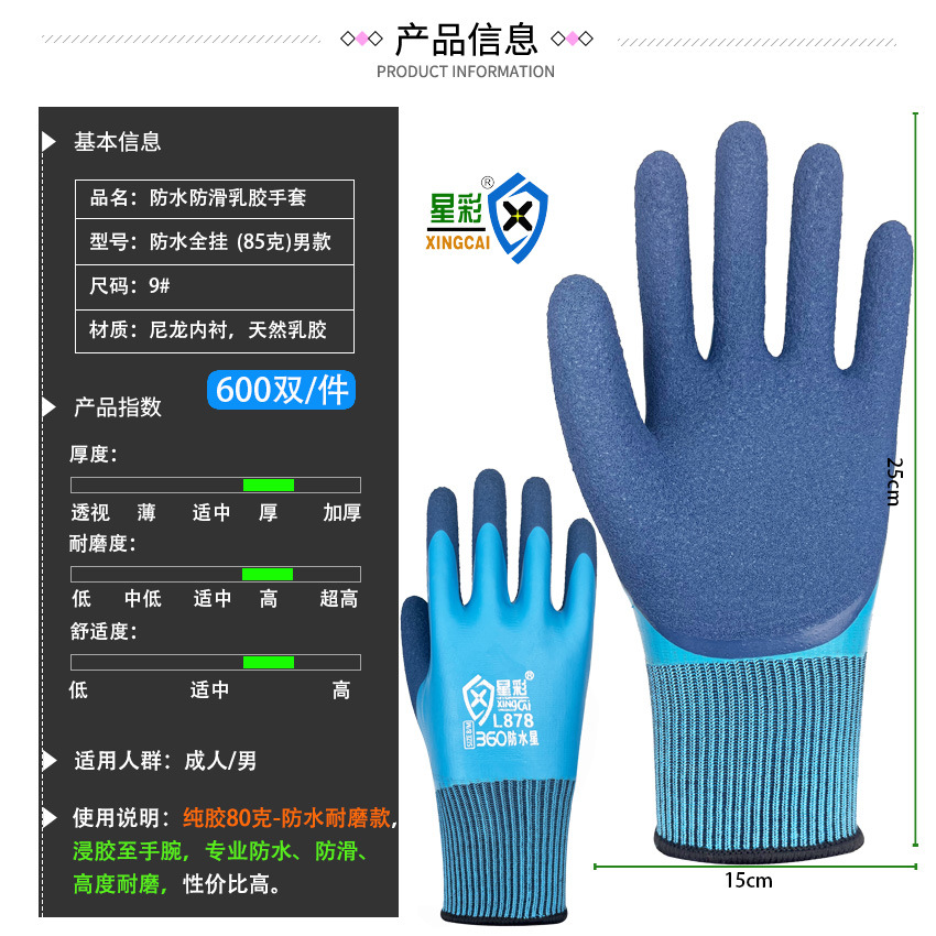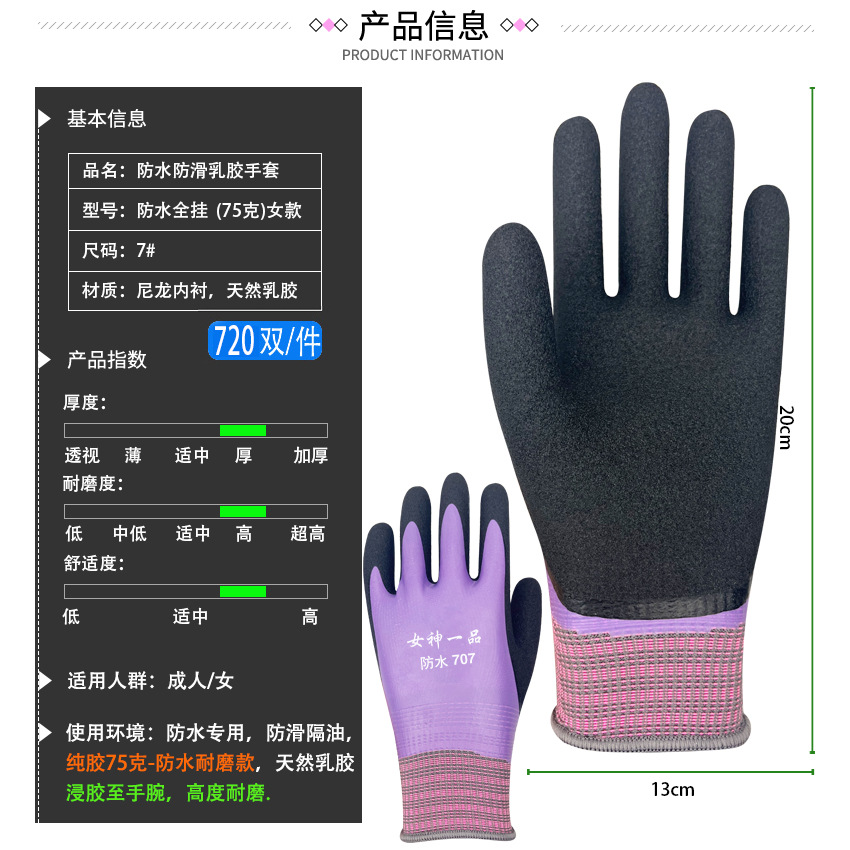 방수 여성 노동 장갑 라텍스 내마모성 교수형 접착제 미끄럼 방지 디핑 보호 수생 내유성 작업 공장 도매스토어 가기