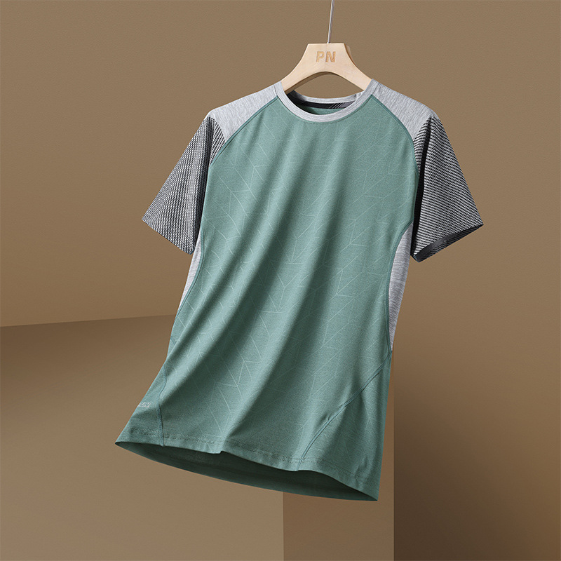 스포츠 속건 티셔츠 남자의 아이스 실크 짧은 소매 세트 여름 얇은 탑 조끼 실행 옷 통기성 반 소매