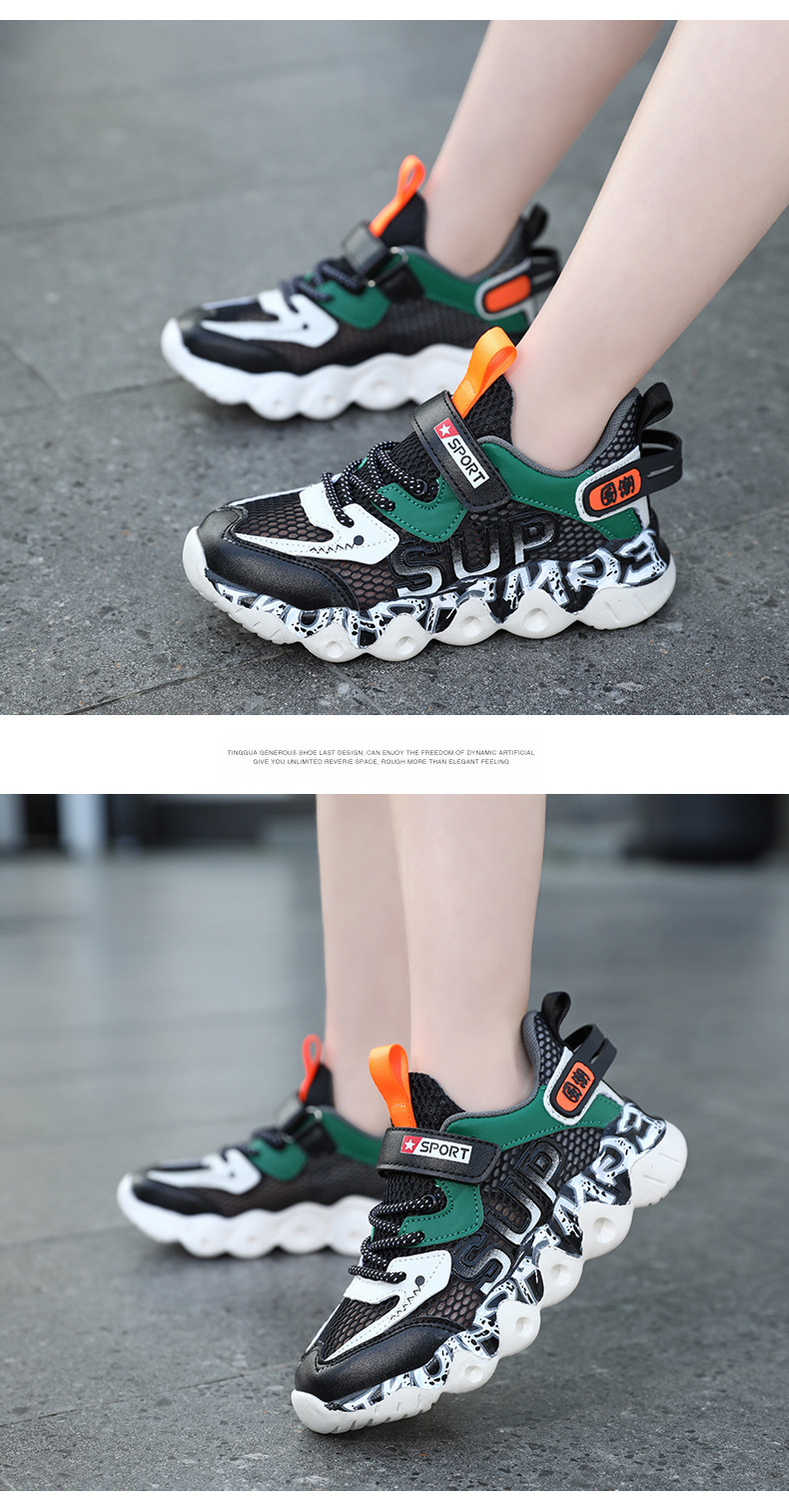남아용 신발, 통기성 메쉬 소재, 2025년 여름 신상품, 가벼운 아동용 운동화, 중대형 어린이용 부드러운 밑창 메쉬 런닝화