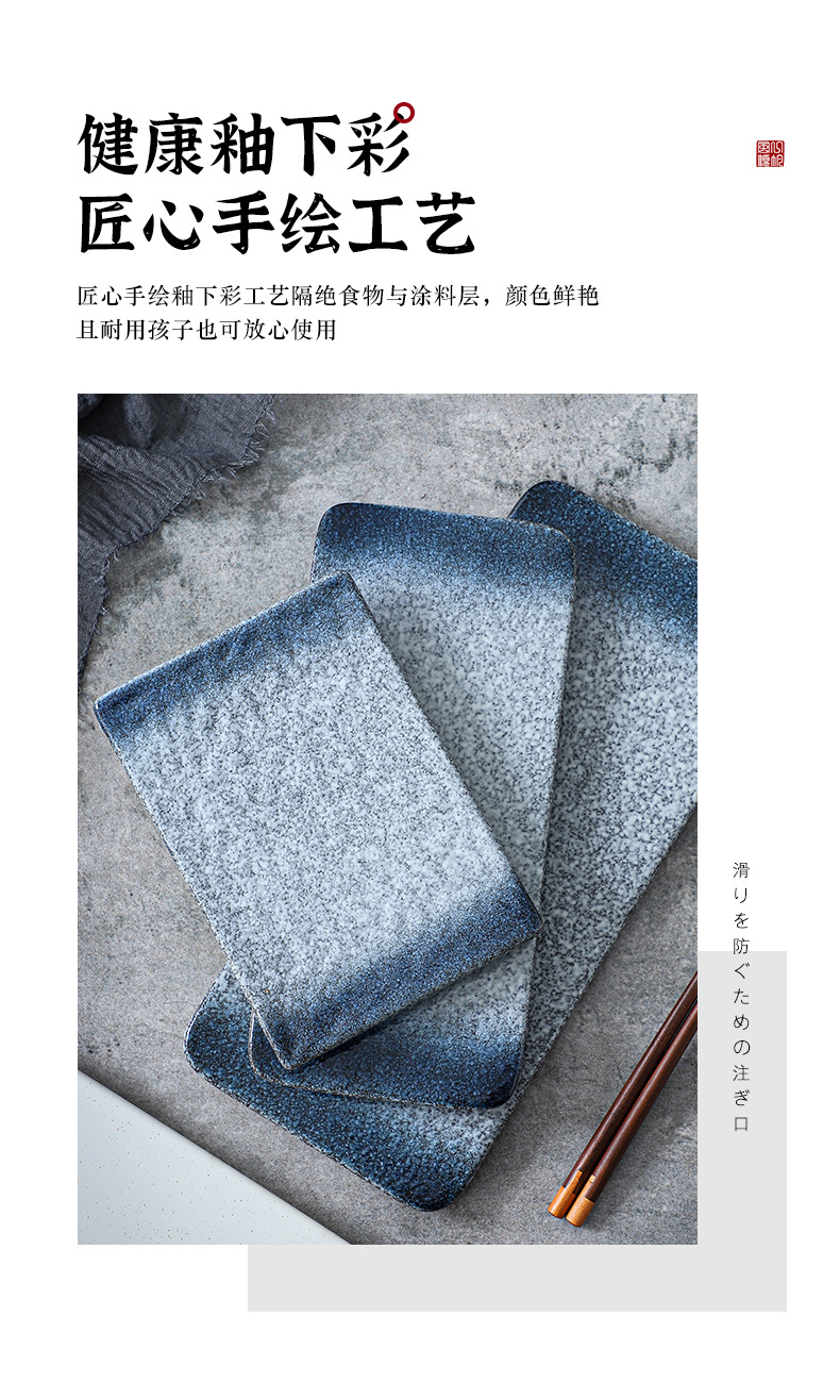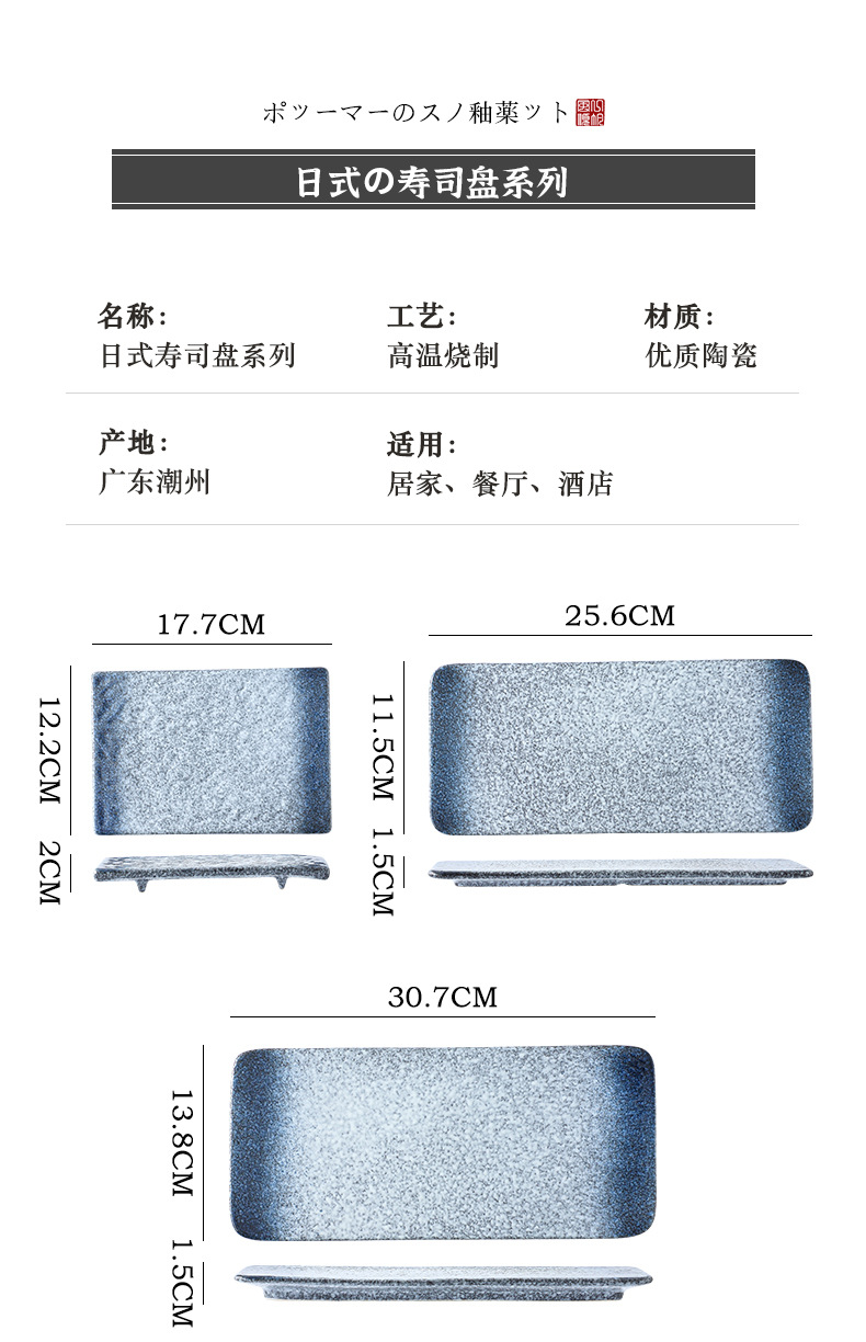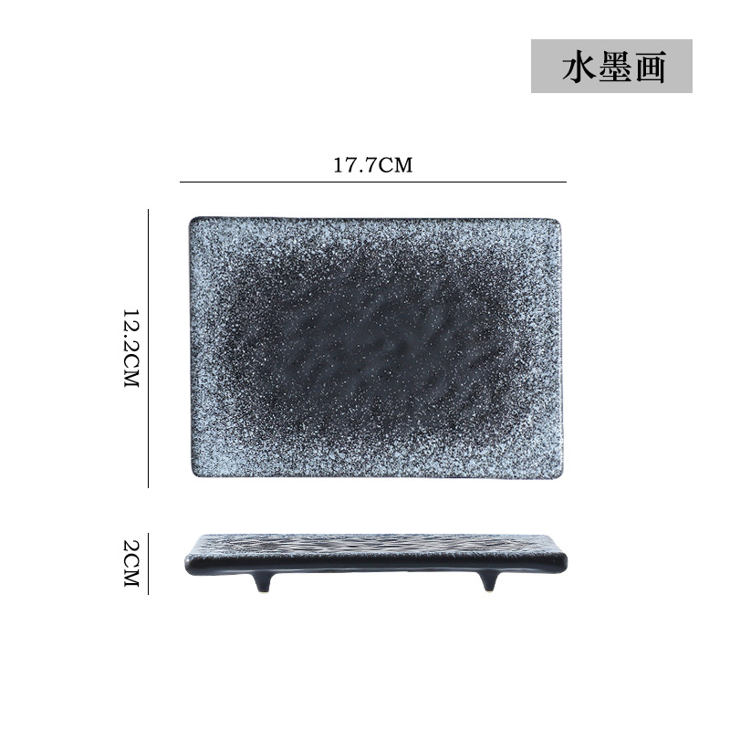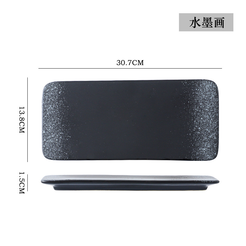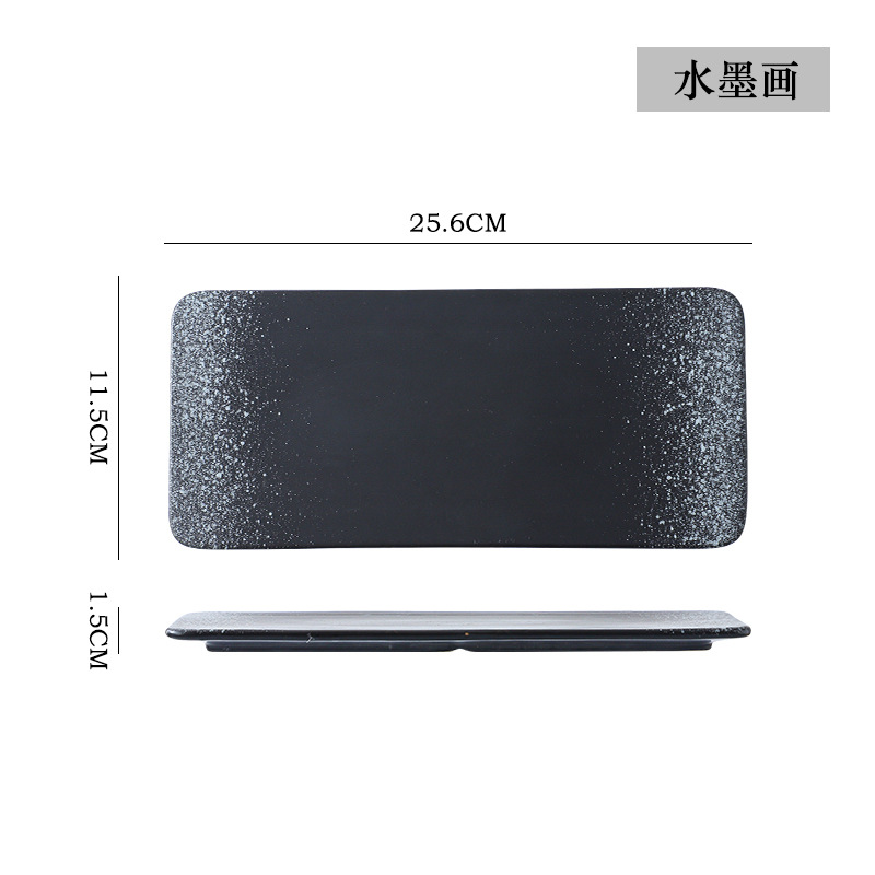 • 12 "긴 사각형 스시 접시-잉크 페인팅