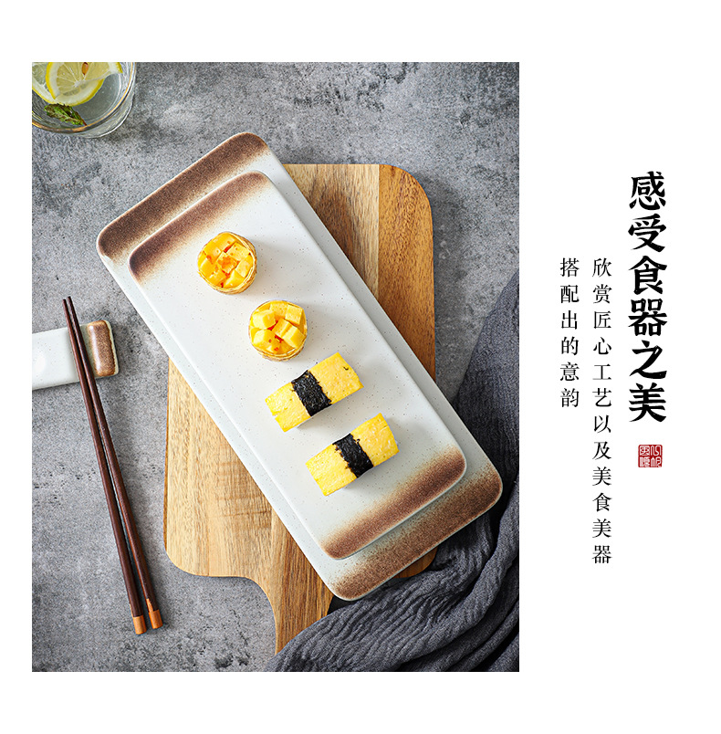 • 12 "긴 사각형 스시 접시-아침 빛이 남아 있습니다
