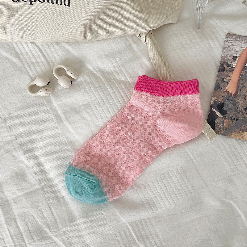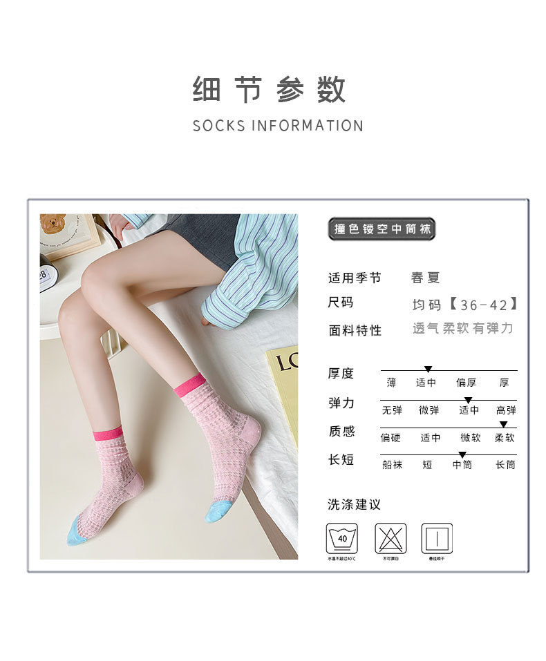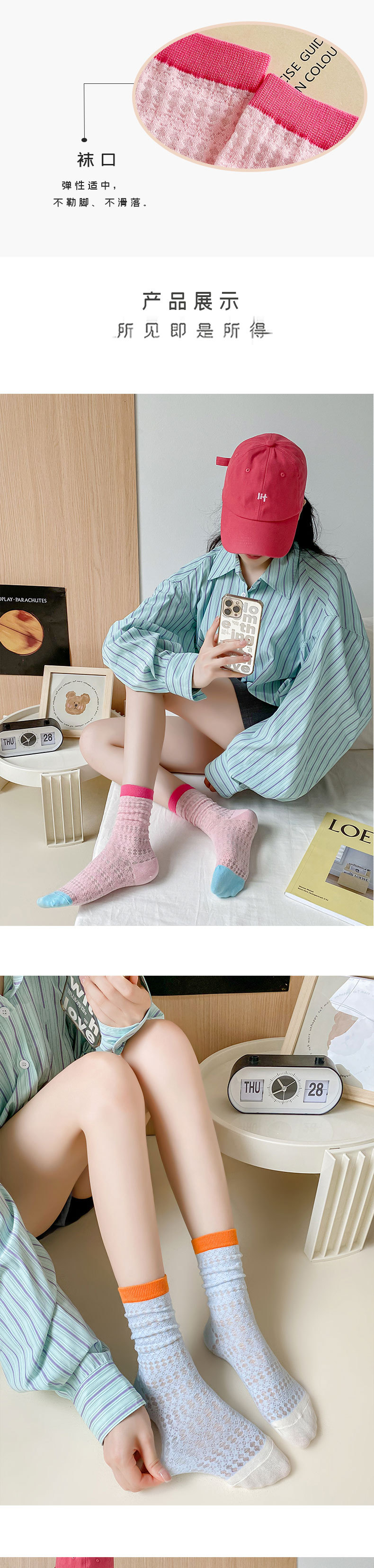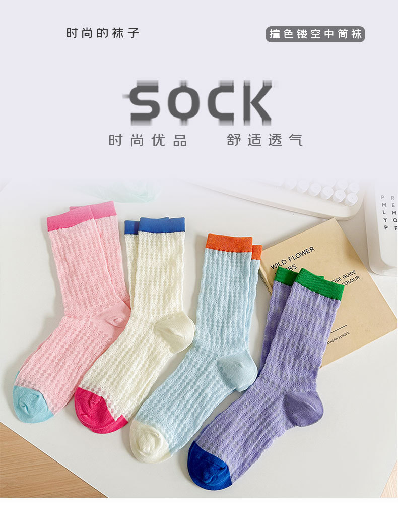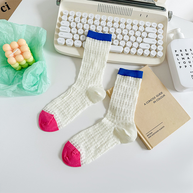 양말 여름 여성 얇은 컬러 블록 파일 양말 중공 메쉬 스타킹 땀 흡수면 양말 일본 중반 종아리 양말 여성 양말스토어 가기