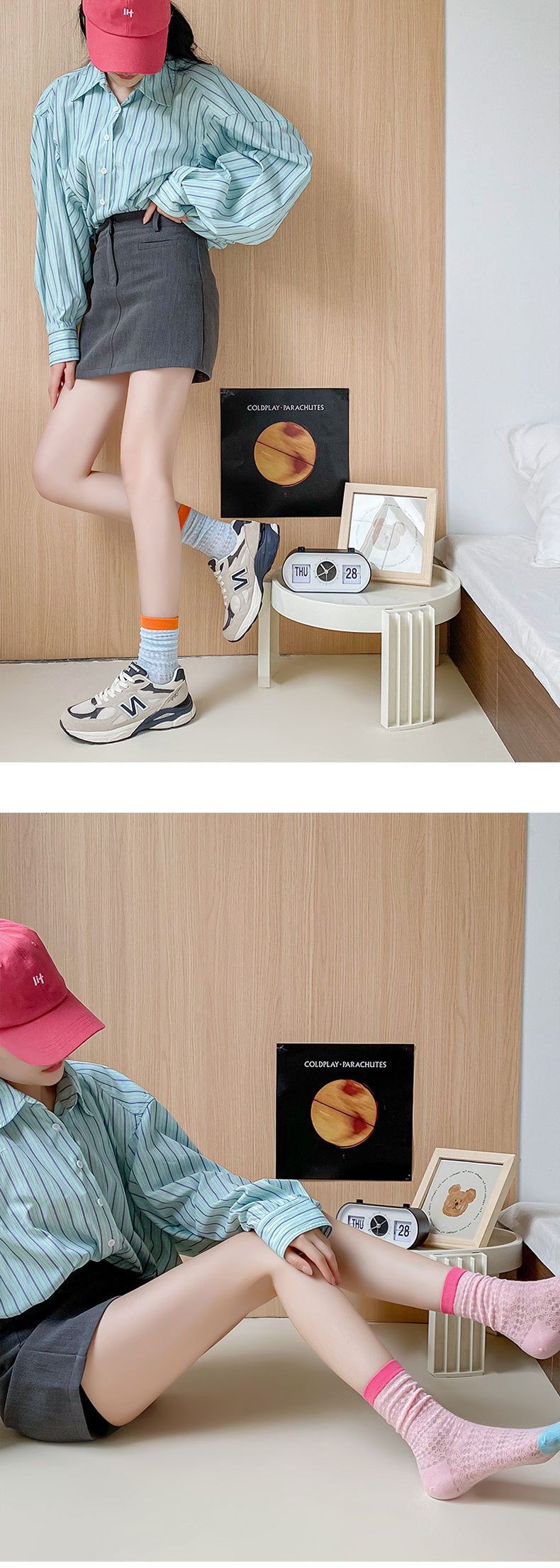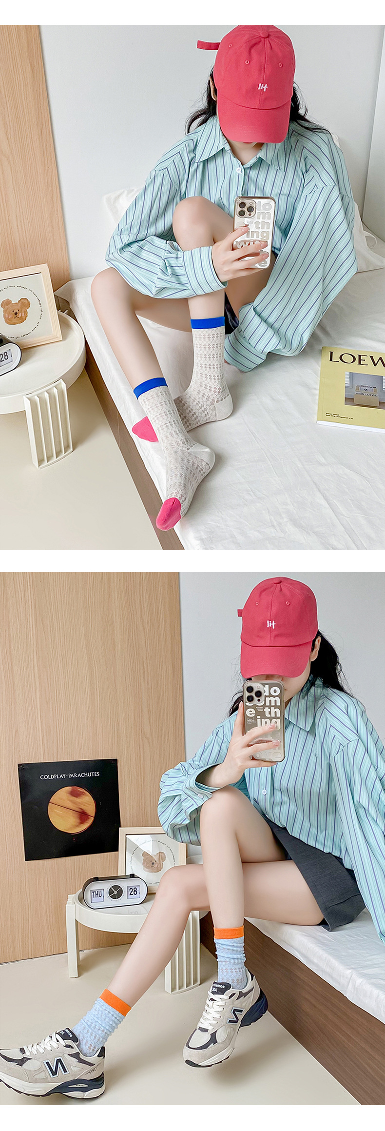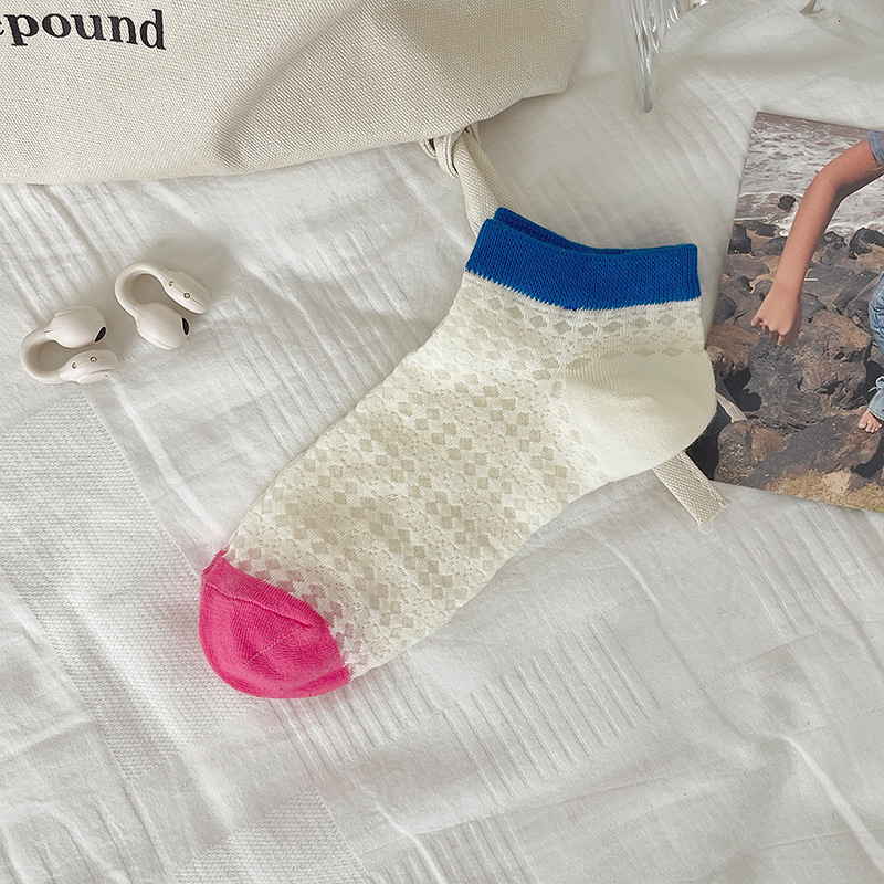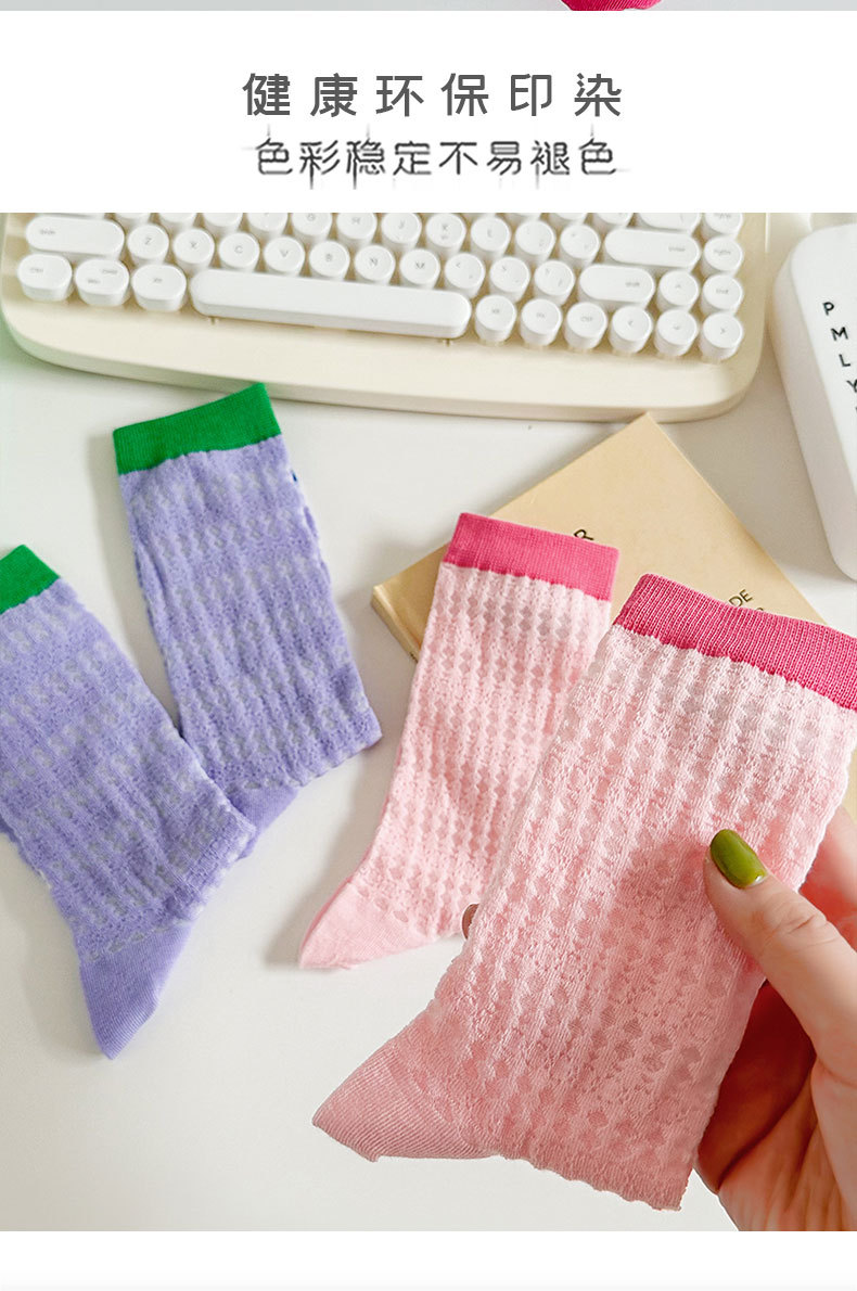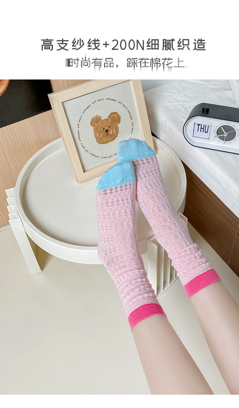 양말 여름 여성 얇은 컬러 블록 파일 양말 중공 메쉬 스타킹 땀 흡수면 양말 일본 중반 종아리 양말 여성 양말스토어 가기